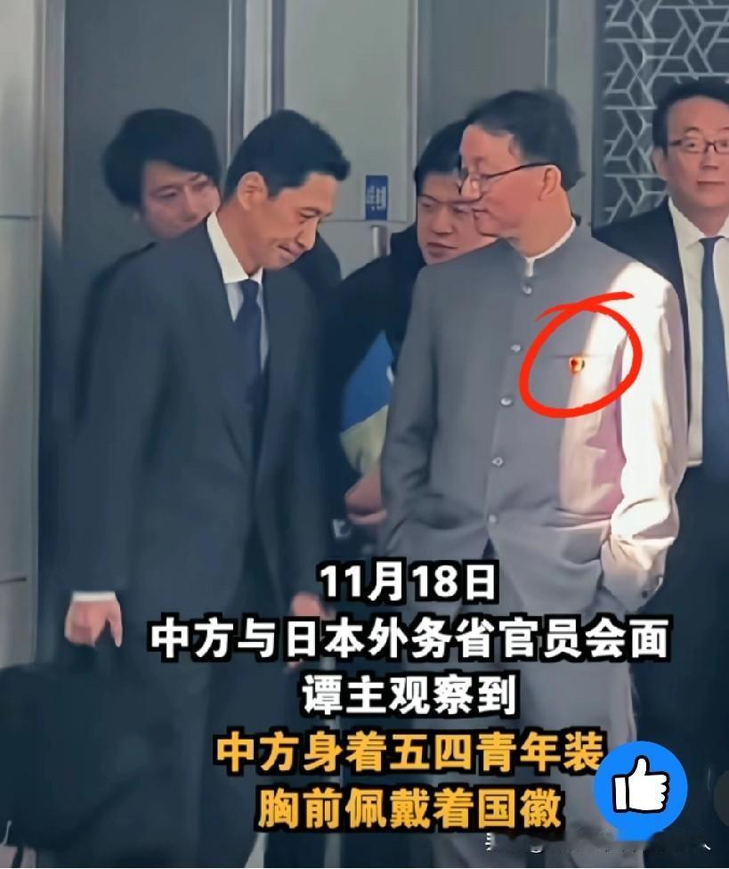 点赞!点赞! 刘劲松这身五四青年装! 为什么一下全网刷屏了? 都说“有了第一套同款”!网友翻刘劲松的旧照,发现都是五四青年装,还有人说是中山装,都被刘司长这身行头惊呆了。 这五四青年装可不是中山装,中山装一共四个明袋,五四青年装只有三个暗袋,更显力量感,立领也竖直一些,不像中山装那样有点弯曲。 还记得百年前,那些穿着五四青年装的青年们喊着“还我青岛”,如今刘司长穿着五四青年装,旁边的日方官员却低着头听训,一副乖宝宝的模样,真是让人想笑又想骂! 要说这五四青年装,行头也好,衣服也罢,可都是有个来头的,这身行头可不是谁都能穿的,还是得有实力才行。 要说这几年日本也不差,在军事、经济等方面都是亚洲第二,实力还是有的,但在土地、人口、军事、经济等方面跟我们比起来可真不算什么。百年前的那身五四青年装,可不是个行头,是百年历史的见证,是我们从弱到强的底气和自信,更是百年青年从“求强”到“要强”的见证! 刘劲松司长的五四青年装刷屏也太好懂了!这哪儿是单纯穿件衣服啊,分明是带着百年历史的底气亮相!以前只知道五四青年装和中山装不一样,现在才清楚暗袋数量、立领设计的区别,更懂了这衣服里藏的精气神。 百年前青年穿它喊“还我青岛”,如今刘司长穿它直面日方,看着日方官员低头听训,真的又解气又感慨。这衣服可不是谁穿都有那股劲儿,背后是国家从弱到强的实力支撑。 网友追“同款”,其实是共情这份民族自信——从“弱国无外交”到现在硬气发声,这身衣服就是最直观的见证,难怪大家越看越热血! 大家对此怎么看?欢迎评论区讨论!外交场合穿搭 中山装套装
