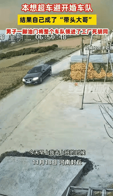 “万万没想到!”河南,男子一大早开着奥迪车去上班,途中遇到一队婚车,就加速超过去想给车队让路,没想到被当成头车,把一排车领进了自己上班的工厂大院。 11月18号早上六点多,天还没完全亮,路上能见度有点低,男子开着自己的奥迪车,本来想超个车赶紧去上班,结果刚超过去,就发现后面有一队婚车跟着他。 他一开始还纳闷,“难到单位附近有人办喜事?咋还跟着我跑呢?” 他加速,后面的婚车也加速,他减速,婚车也跟着减速,一路不离不弃。 直到他把车拐进工厂的小道,停好车回头一看,好家伙,一排奥迪车都跟进来了,堵在小道上,司机们还探出头来看,这时候大家才反应过来跟错车了。 原来婚车队的原定头车临时出了故障,男子的奥迪颜色、款式都和预定的头车差不多,再加上天色暗,男子又直接超车到前面,其它车以为头车赶上来了,就跟上去了。 最后婚车队倒车离开,继续去接亲了。 有网友说太搞笑了,这大概是最意外的头车司机,没吃席还帮人领了一路队,婚车队员也不核对下就跟着走,还好没给人领到高速上去。 其实生活就是这样,偶换个角度看,这份误打误撞的缘分,既给新人的婚礼添了段特别的插曲,也让男子的上班路多了份难忘的回忆,挺有趣。