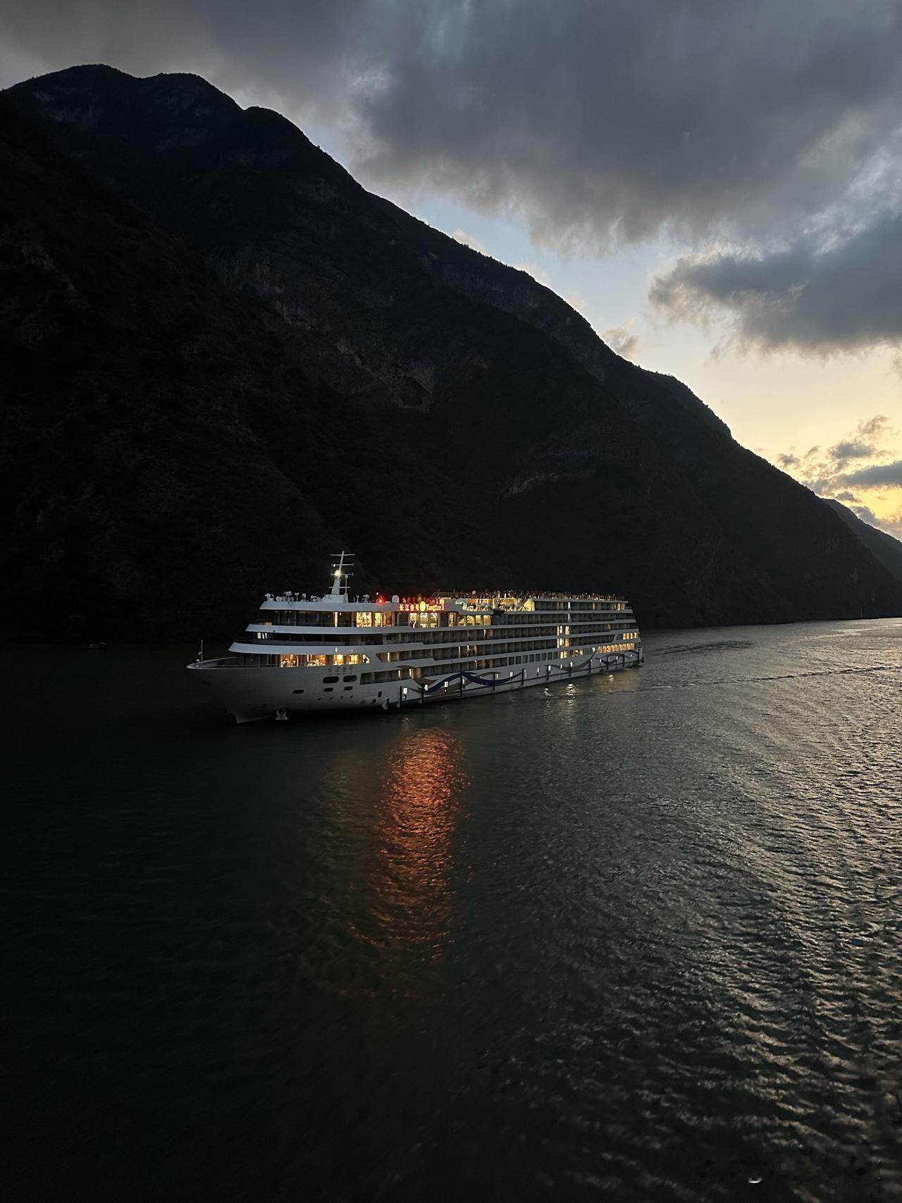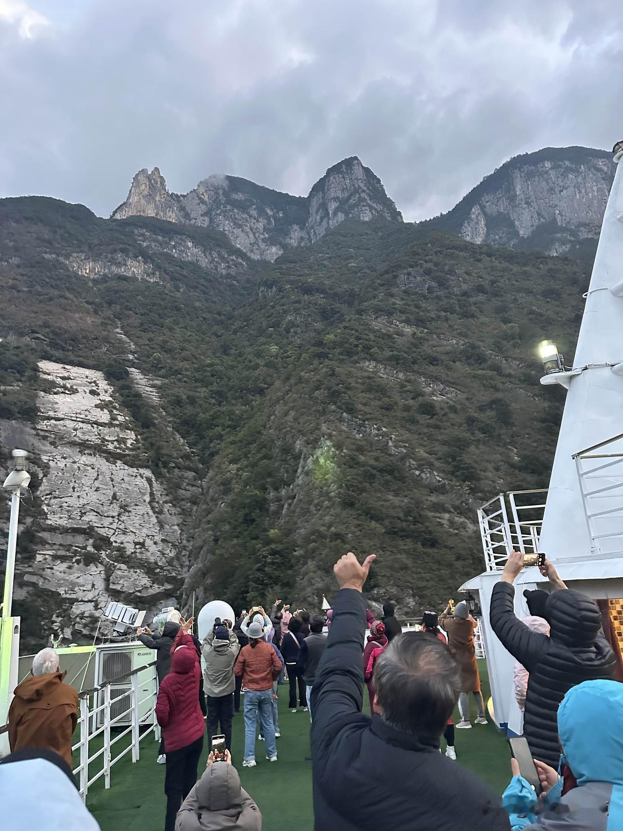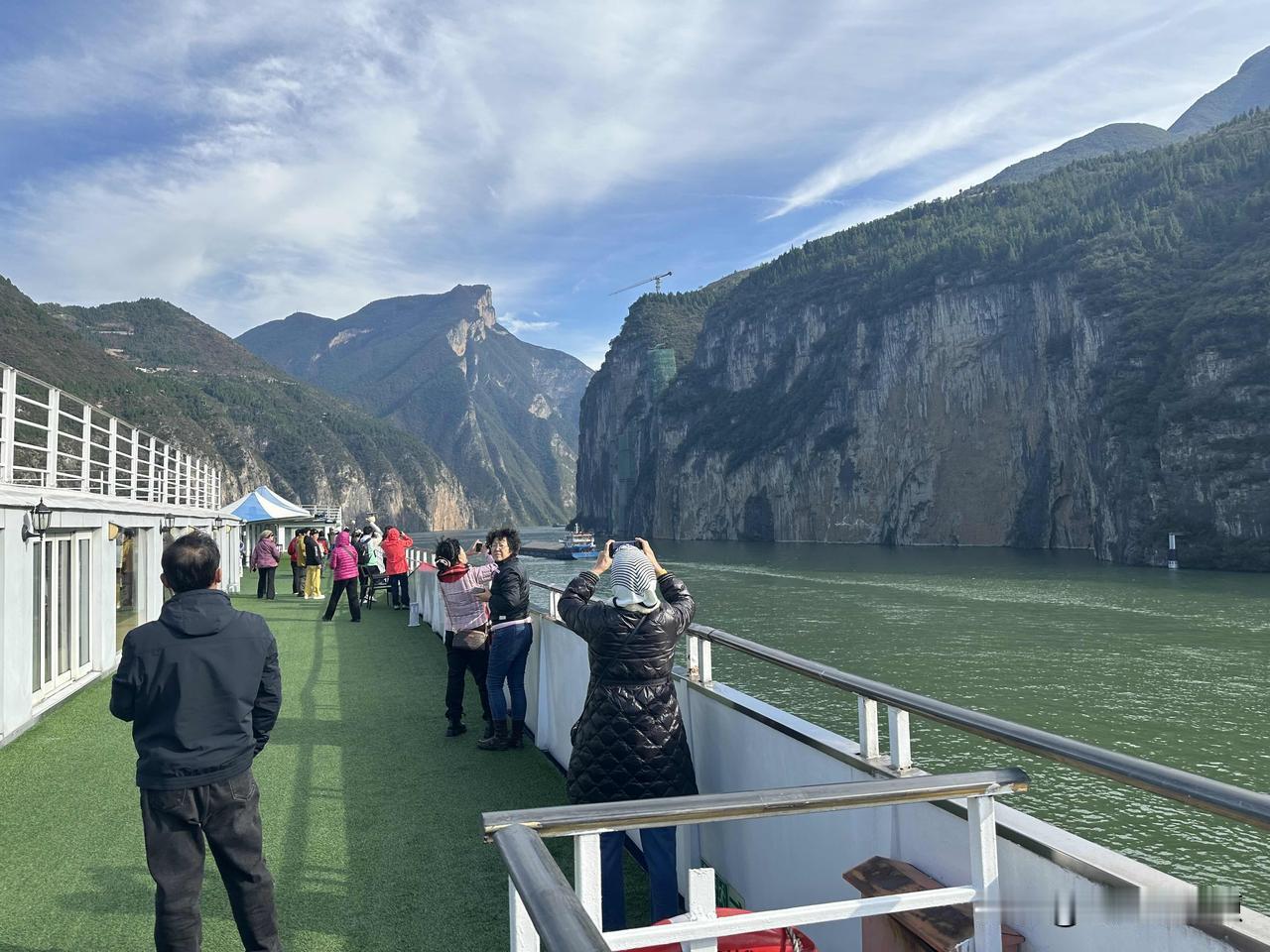 三峡游轮游日记 | 第四天:通过巫峡瞿塘峡、游览小三峡和白帝城 今天阴转晴,是这次游览最紧张的一天,要通过巫峡和瞿塘峡、同时登陆去游览小三峡和白帝城。 昨夜游轮离开秭归港向重庆进发,今日早上约7:00游轮经过长江三峡-巫峡神女峰,早上起床,前往游轮6楼阳光甲板观看著名的神女峰。 用完早餐,游轮停靠巫山港,下游轮换乘观光船游览巫山小三峡,开启沉浸式峡江体验。来回一共花了3个小时,中午返回游轮享用午餐。 由于三峡大坝建成蓄水,小三峡沿线许多村镇被水淹没,原来的许多景观消失了,也添了一些新景,如建设一些跨越小三峡的大桥,形成了新的景观。但是,总体感觉,现在小三峡不如原来小三峡风景好看。 中午游轮离开了巫山港,继续向重庆方向行进,下午14: 30左右,游轮驶入瞿塘峡,再次前往游轮6楼阳光甲板观看瞿塘峡风光,瞿塘峡是三峡中最短的,只有8公里,游轮20分钟走完。 随后游轮停靠奉节港,我们登岸乘车去游览“三峡之魂”白帝城。大坝修建蓄水之后,白帝城并未搬迁依然是旧址原貌,然而,原来的白帝城是一座山,现在是一座孤岛,修了一座桥把白帝城与陆地相连。 奉节白帝城位于长江北岸掩映在郁郁葱葱的绿树丛中,是三峡的西口,是入川的门户。由于地势险峻,古往今来,常为兵家必争之地,也是三峡游览胜地之一。还是拍摄10元人民币背景图案"夔门天下雄”的最佳地点。 参观完白帝城,原路返回游轮,结束了一天游览行程。晚上安排了三峡主题晚会和电影,自愿参加。我在房间编三峡游轮游日记,发微头条。