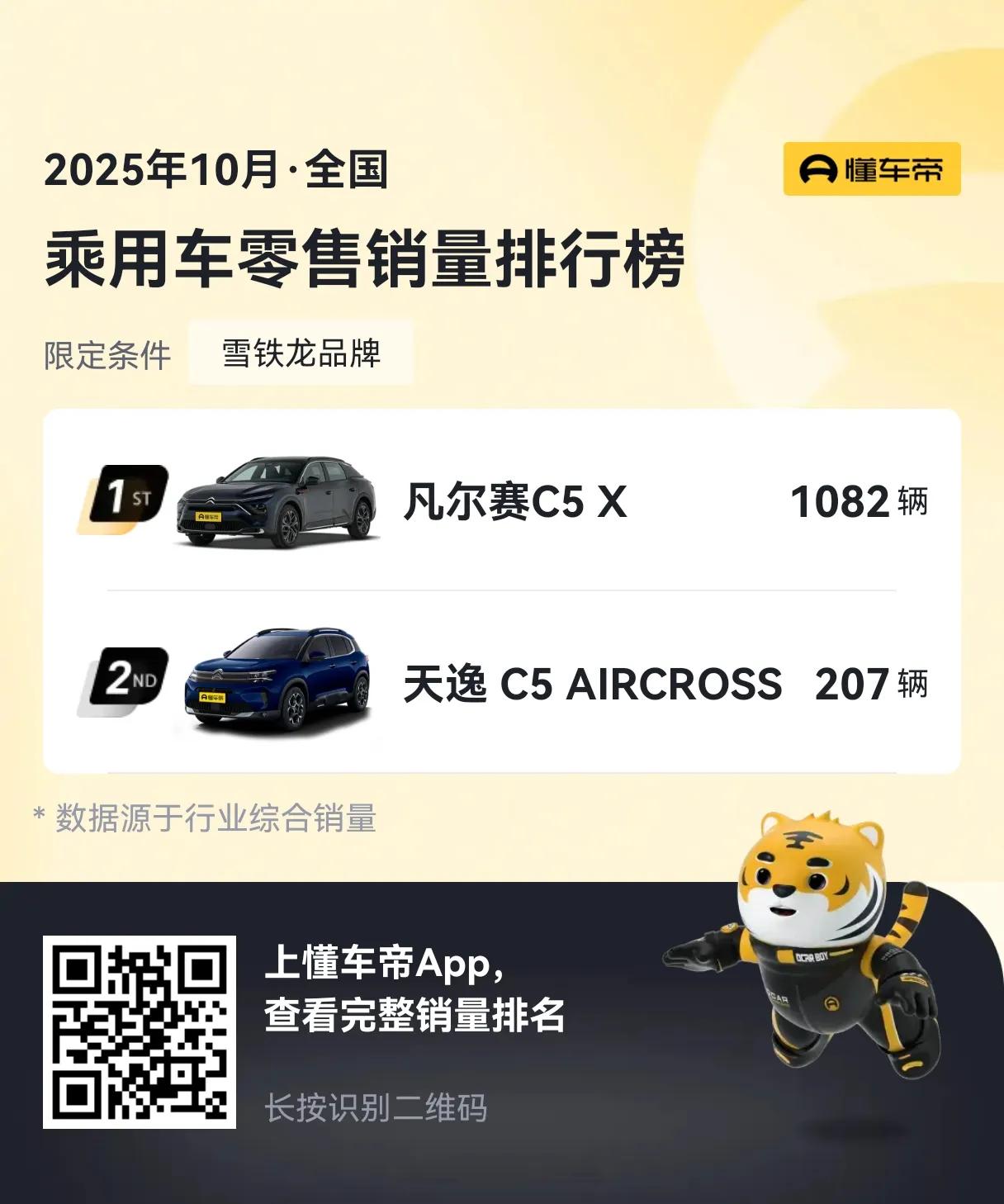 如果我不说,是不是很多人都已经忘记雪铁龙这个品牌了? 当我以为雪铁龙已经没有销量的时候,一查数据发现,凡尔赛C5 X还有1082辆的月销量。另外还有一款天逸C5还有207辆的月销量。 大家对雪铁龙的最后印象是不是前几年的雪铁龙C6降价到11万左右全是优点那一次? 没想到这样的降价也没有挽救雪铁龙的销量下滑。 作为曾经在中国也曾叱咤风云的品牌,雪铁龙是多少人的回忆。只是没有想到如今的雪铁龙已经沦落至此。 平心而论,雪铁龙的质量一定比现在某些新势力要强,而且强的不是一点半点,但是也不知道从何时起,雪铁龙的销量就开始逐年下降。 有雪铁龙的车主吗?说一说你们的爱车如何?