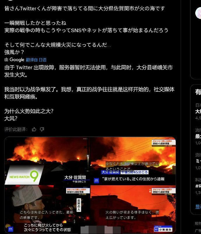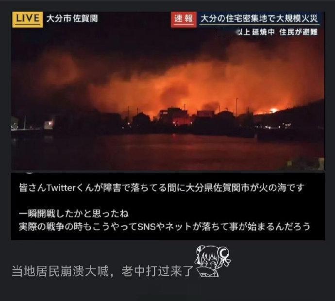 昨晚日本火灾给当地人吓坏了,以为开战了 当地时间18日傍晚,日本大分县大分市发生大规模火灾,火势持续数小时未受控制,截至19日已蔓延至170余栋建筑,包括大量民宅。目前已有175名居民前往避难所安置,另有一名70余岁男性处于失联状态。 火灾期间,当地出现大面积网络瘫痪,两者叠加在部分民众中引发严重恐慌。社交媒体画面显示,有居民情绪崩溃,惊呼“老中打过来了”,误以为遭遇军事袭击。火灾与断网双重冲击导致现场秩序混乱,民众彻夜难眠。 此次火灾暴露出当地应急管理与基础设施的薄弱环节。在高市政权背景下,事件被舆论视为执政应对不力的又一例证。后续救援与重建工作将面临严峻考验。高市惹大祸日本人有苦头吃了