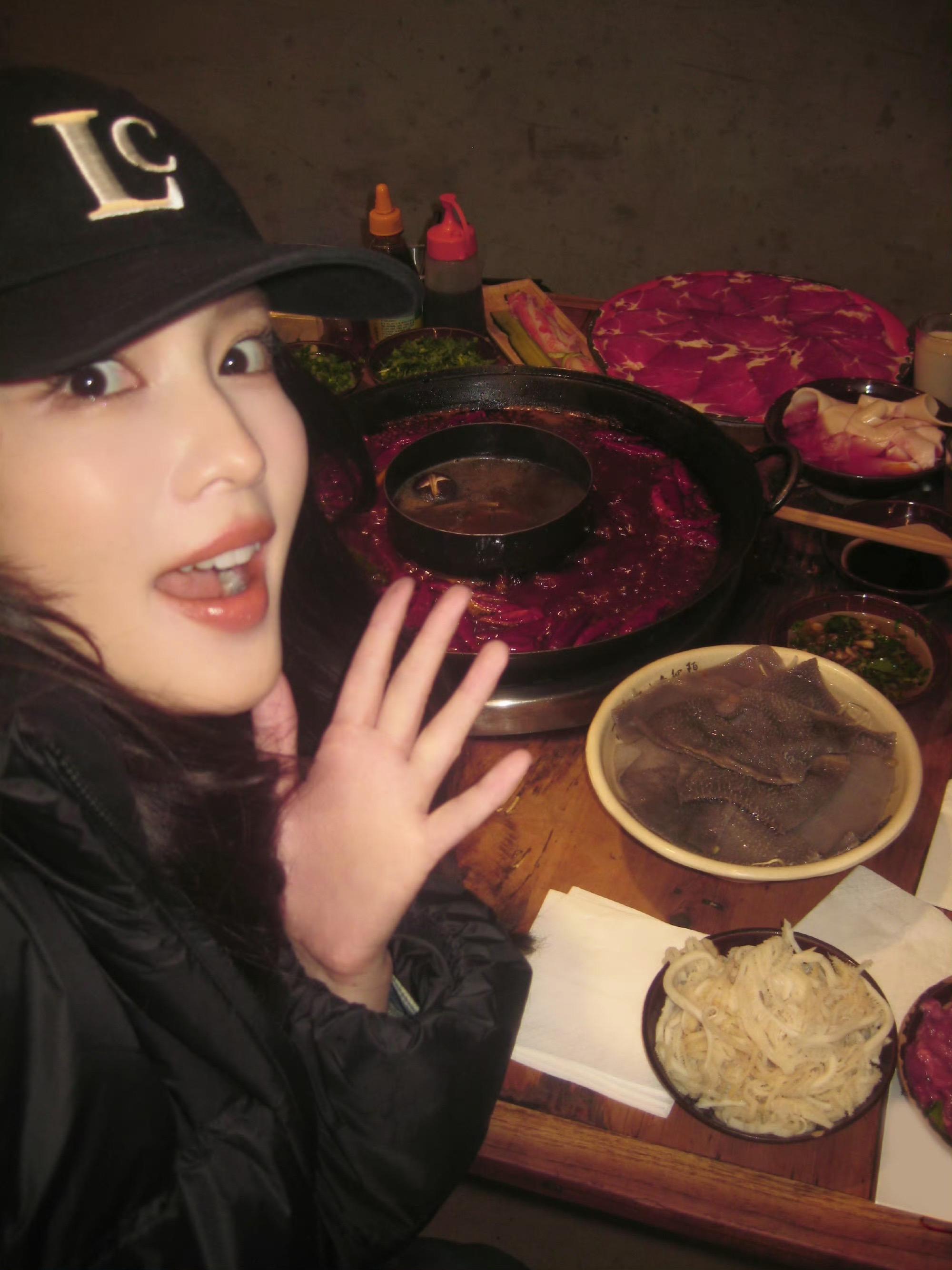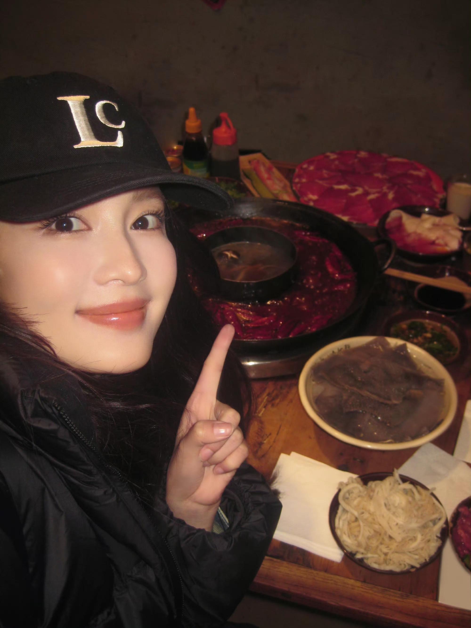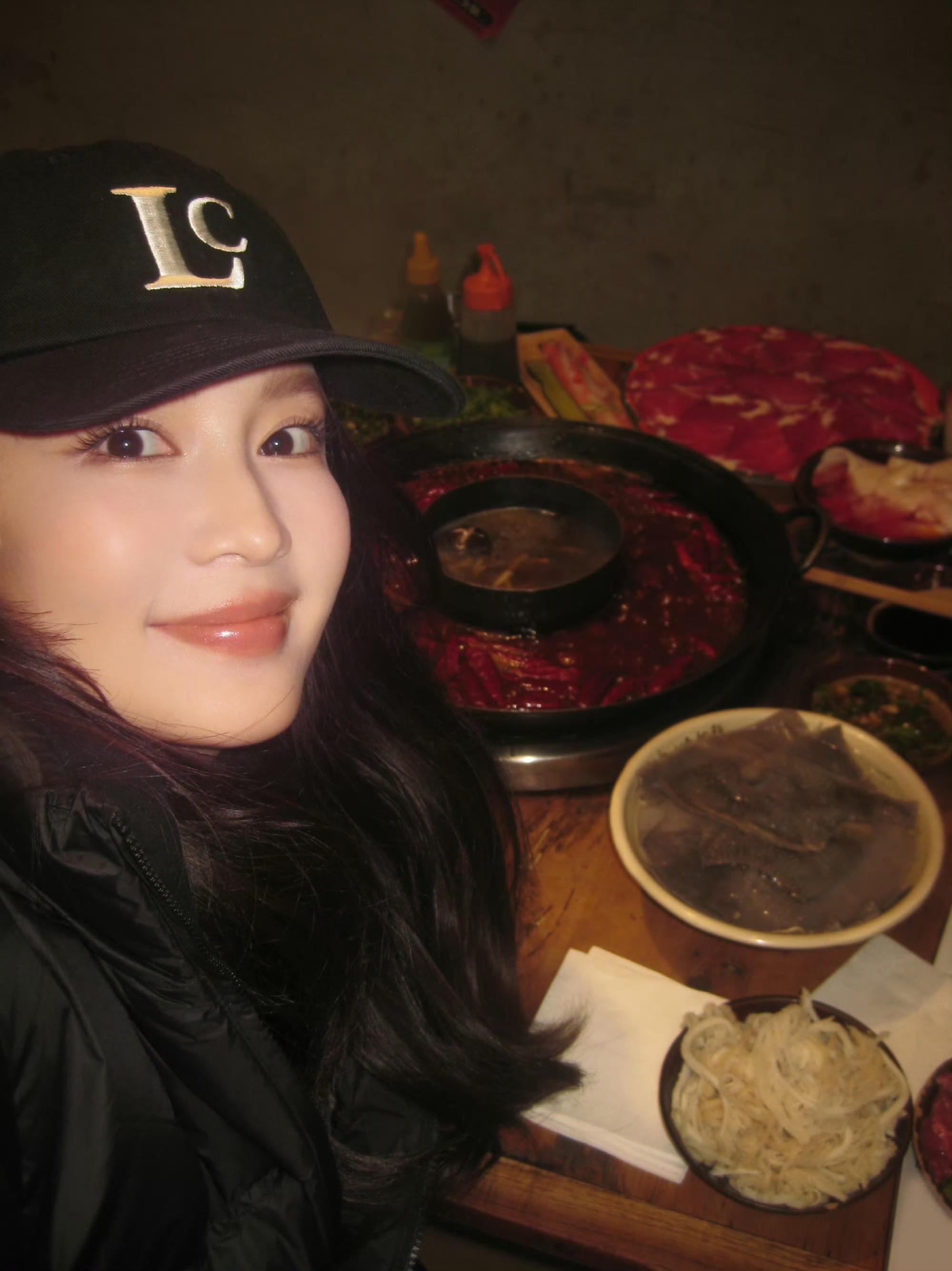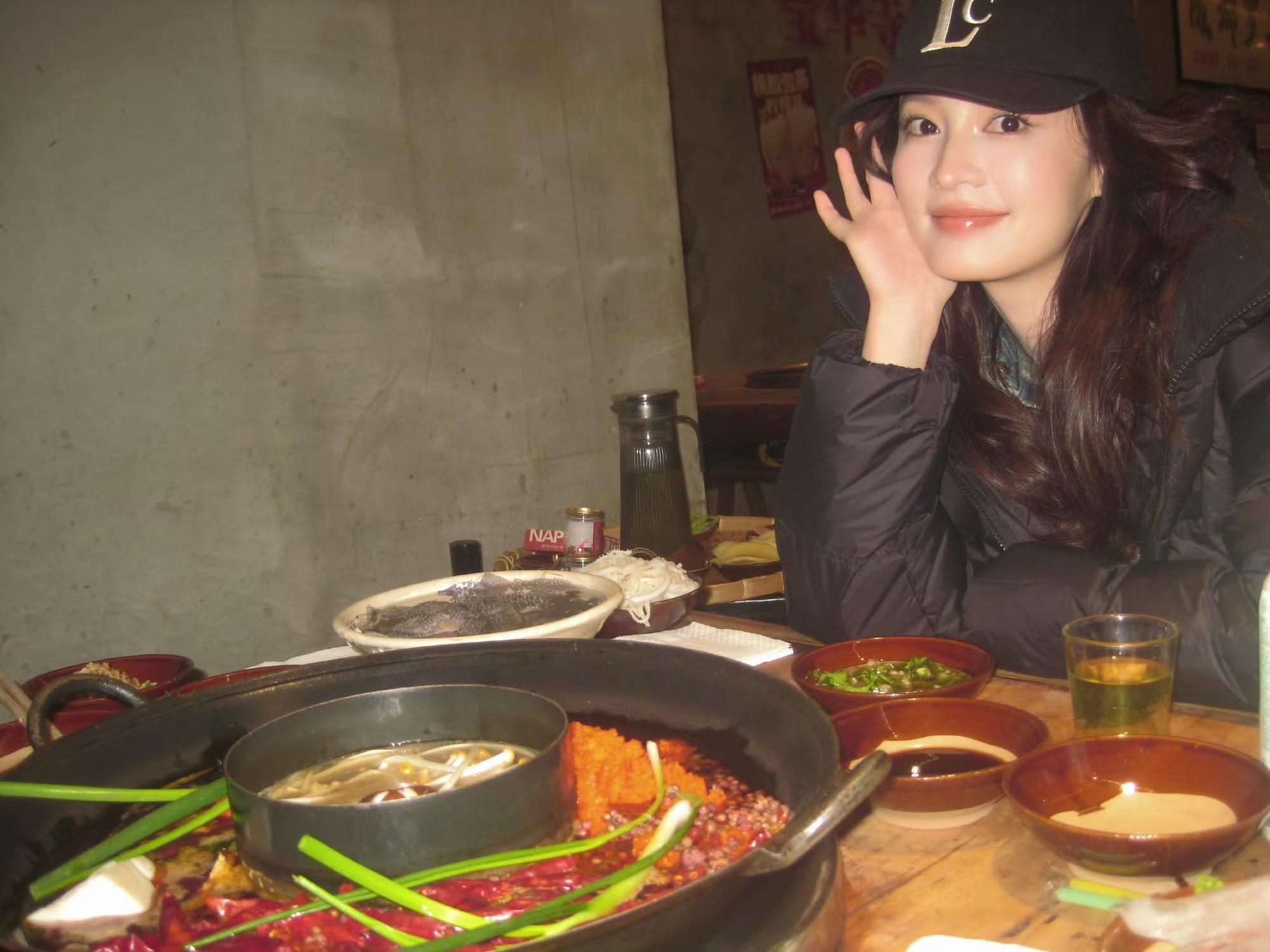 吴艳妮在成都穿着短裤大腿看起来很粗壮,表情自信又张扬