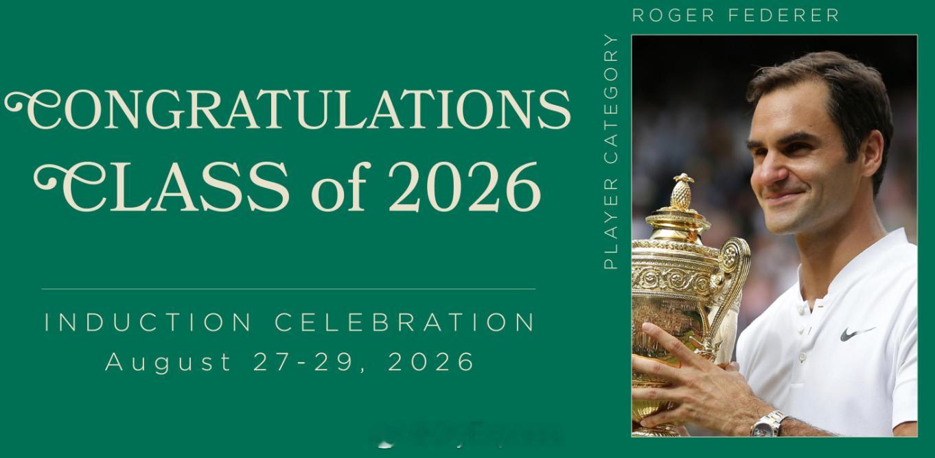 11月19日,国际网球名人堂宣布瑞士天王费德勒成为2026年名人堂成员!
