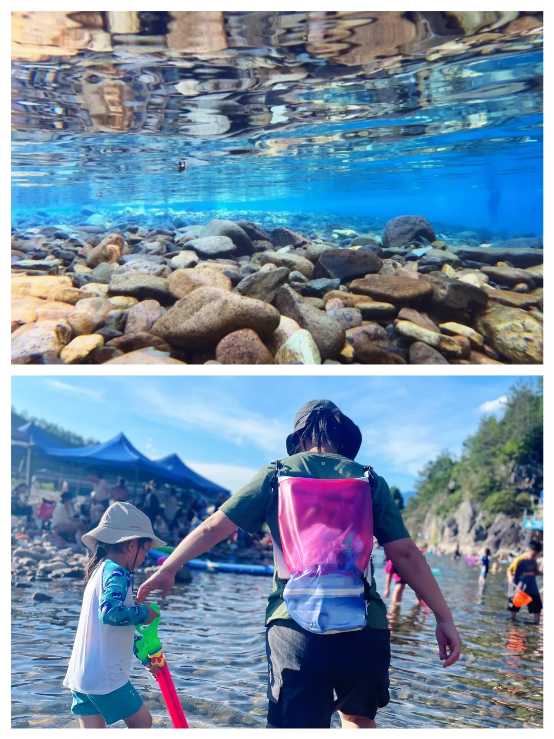 3⃣️孩子太小可以只选择在开阔水域的浅滩玩,圳口大桥和下叶村交通都很方便,周末玩水氛围很好。