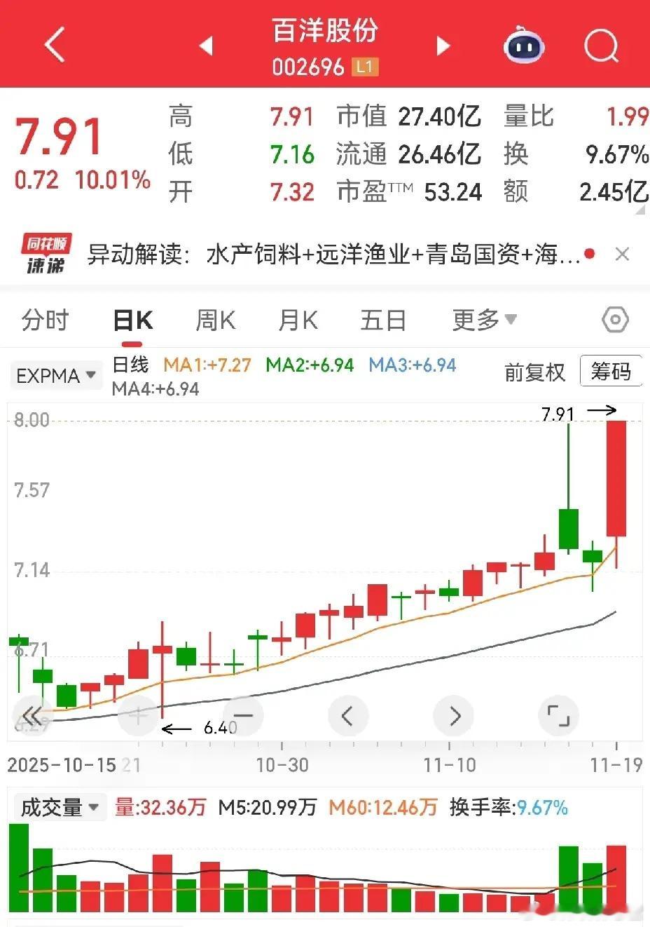 水产养殖概念逆势冲高!中水渔业三连板成龙头外交表态释放行业信号,日本水产品出口预期受限下,水产养殖板块迎来强势上涨。中水渔业率先启动三连一字板,成为板块绝对龙头,后续龙二龙三角逐升温。布局需紧跟产业逻辑,把握先知先觉的投资机会~