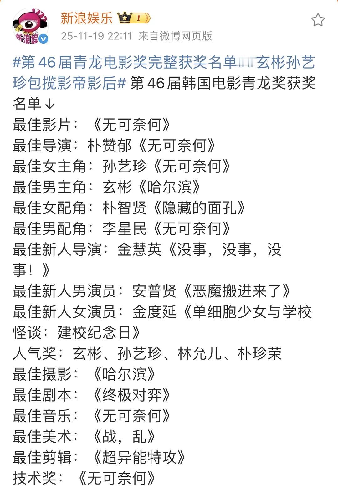 孙艺珍玄彬两口子拿下了青龙奖影帝影后双强夫妻这俩cp粉也太爽了