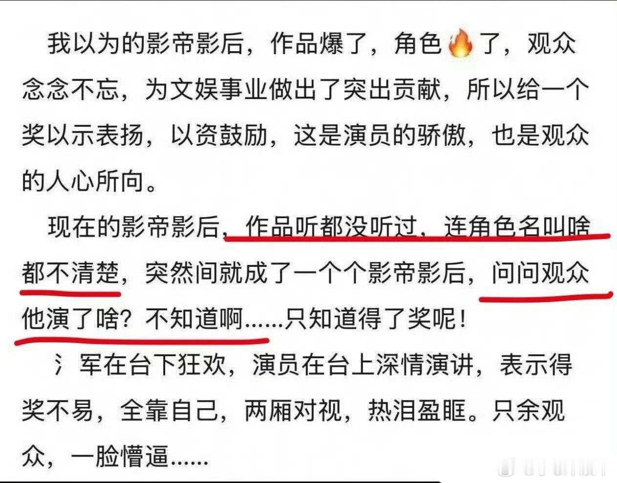 别说了现在的电影不需要观众的.都是拍给评委看的一个圈子的奖左右手换电影没上映就评奖了还有角色越惨越稠越圡的越得奖……别说大家不爱进电影院🎦了.关观众🧶啥事啊!