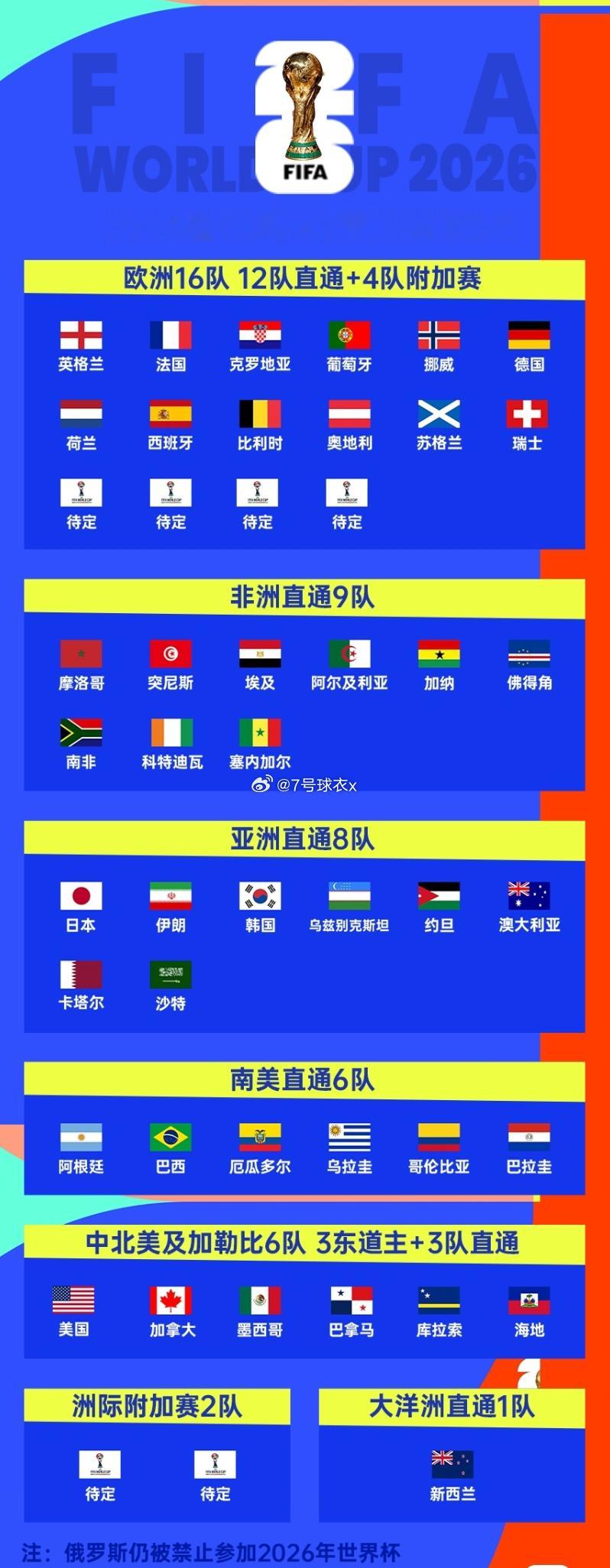 国际比赛日结束,42支直通美加墨世界杯的球队也已全部确定,世界杯官方发布了42队大集结的首张海报,并且配文:“42个国家,一个梦想”。42位代表各自队伍的球星出现在了这张海报上,包括梅西、J罗、凯恩、哈兰德、B费、萨拉赫、姆巴佩等球迷耳熟能详的足坛明星。世界杯还剩最后6个席位待确定,其中4个席位将由欧洲区附加赛决出,另外2个席位通过洲际附加赛确定。