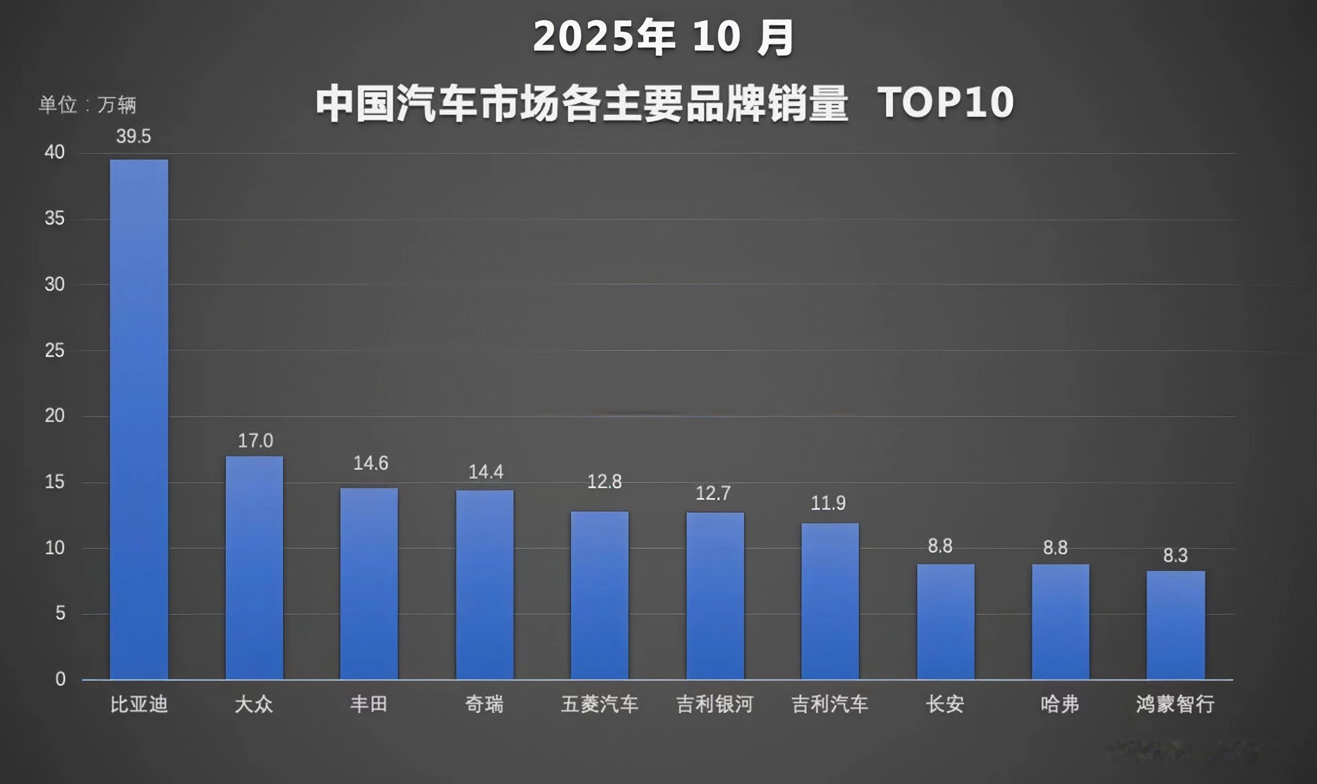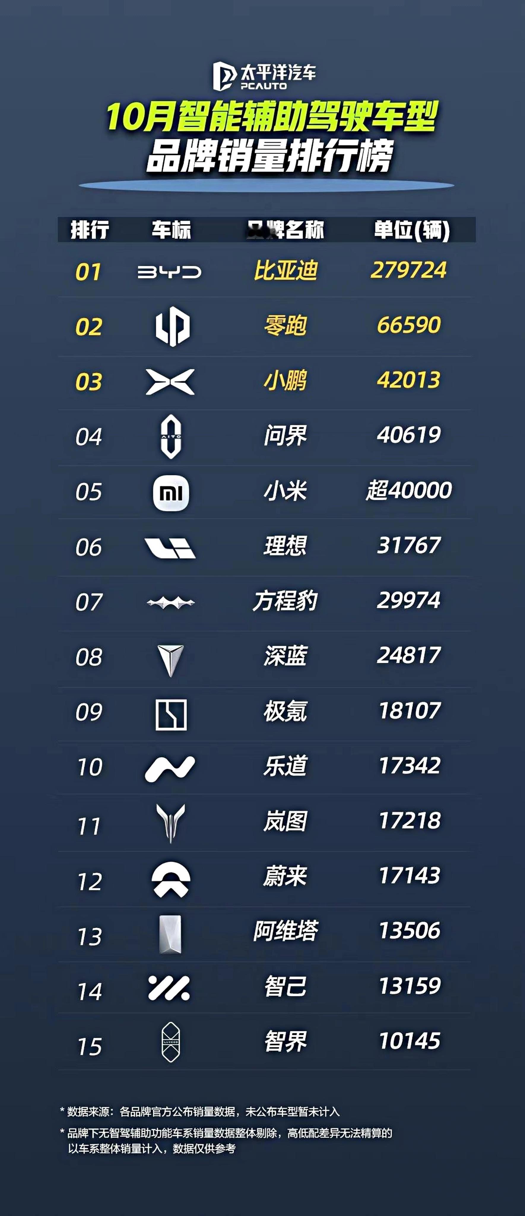 比亚迪说是新能源汽车市场的六边形战士真不为过,表现太亮眼了!2025年1-10月累计卖了370多万辆,完成全年目标超80%,10月单月还创下44万+的年内新高,稳居行业榜首。最让我意外的是,智驾销量突破新纪录!搭载“天神之眼”系统的车型累销超200万辆,10月智驾车型销量就快28万,是第二名的四倍多。这离不开比亚迪真金白银的研发投入,前三季度437亿的研发费没白花,日均1.3亿公里的智驾数据让系统越用越靠谱。加上海外出口暴增130%、高端品牌方程豹月销破3万,比亚迪靠技术和产品力站稳了脚跟,这才是中国车企该有的样子!