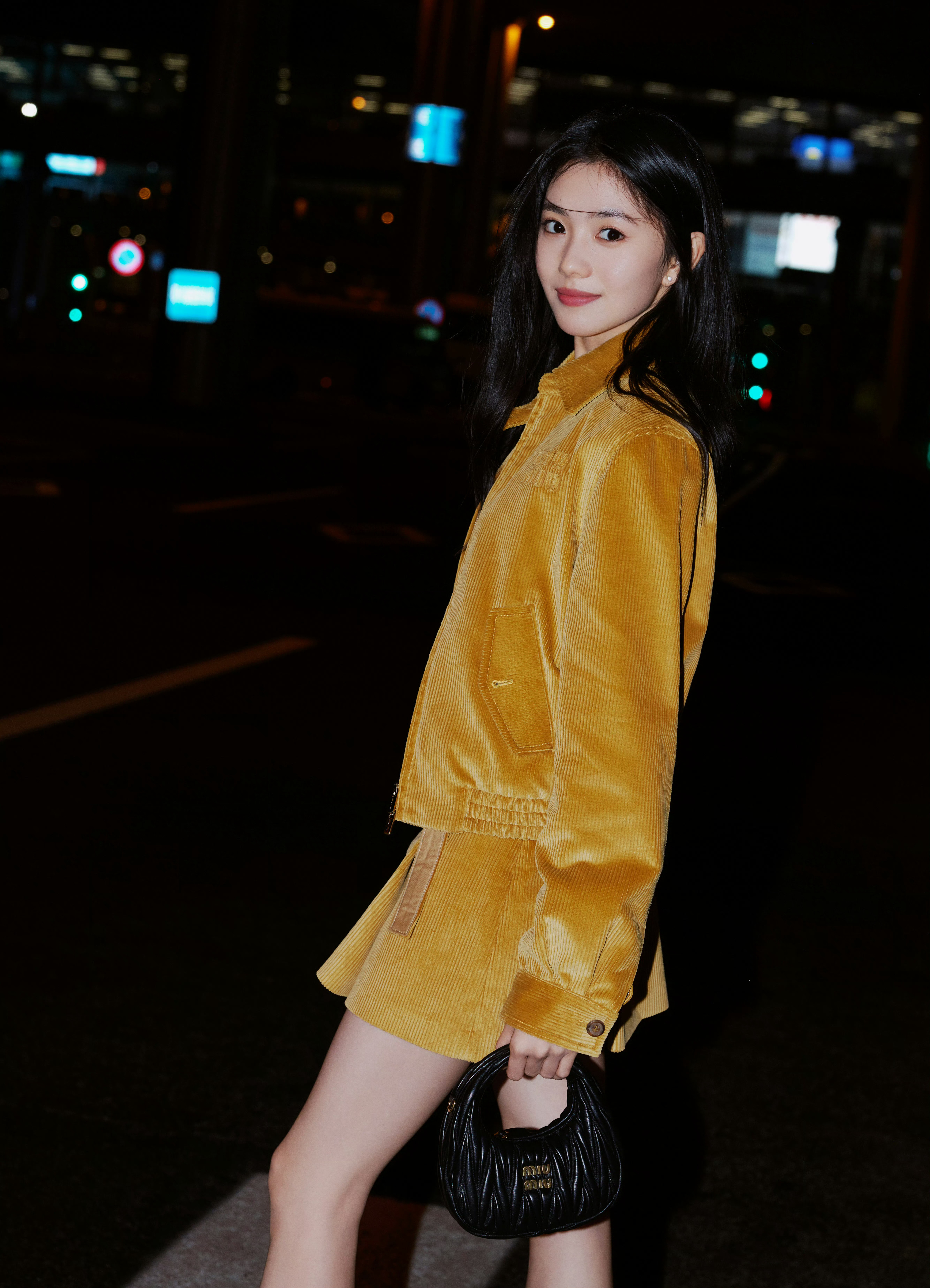 刘浩存最新出发巴黎造型,明黄色彩少女格调()