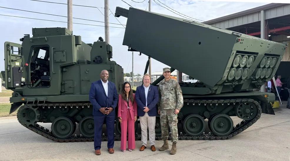 高机动多管火箭发射系统已经成为美国军火贸易中的“抢手货”。 美军红河军械库指挥官丹尼斯·J·法哈多上校在10月7日的仪式上致辞,庆祝两套M270A2多管火箭发射系统交付给英国。在他身后的是英国国防部的官员埃德·卡茨、洛克希德·马丁的卡罗琳·奥热霍夫斯基以及战略和作战火箭与导弹项目办公室的罗恩·霍利迪。