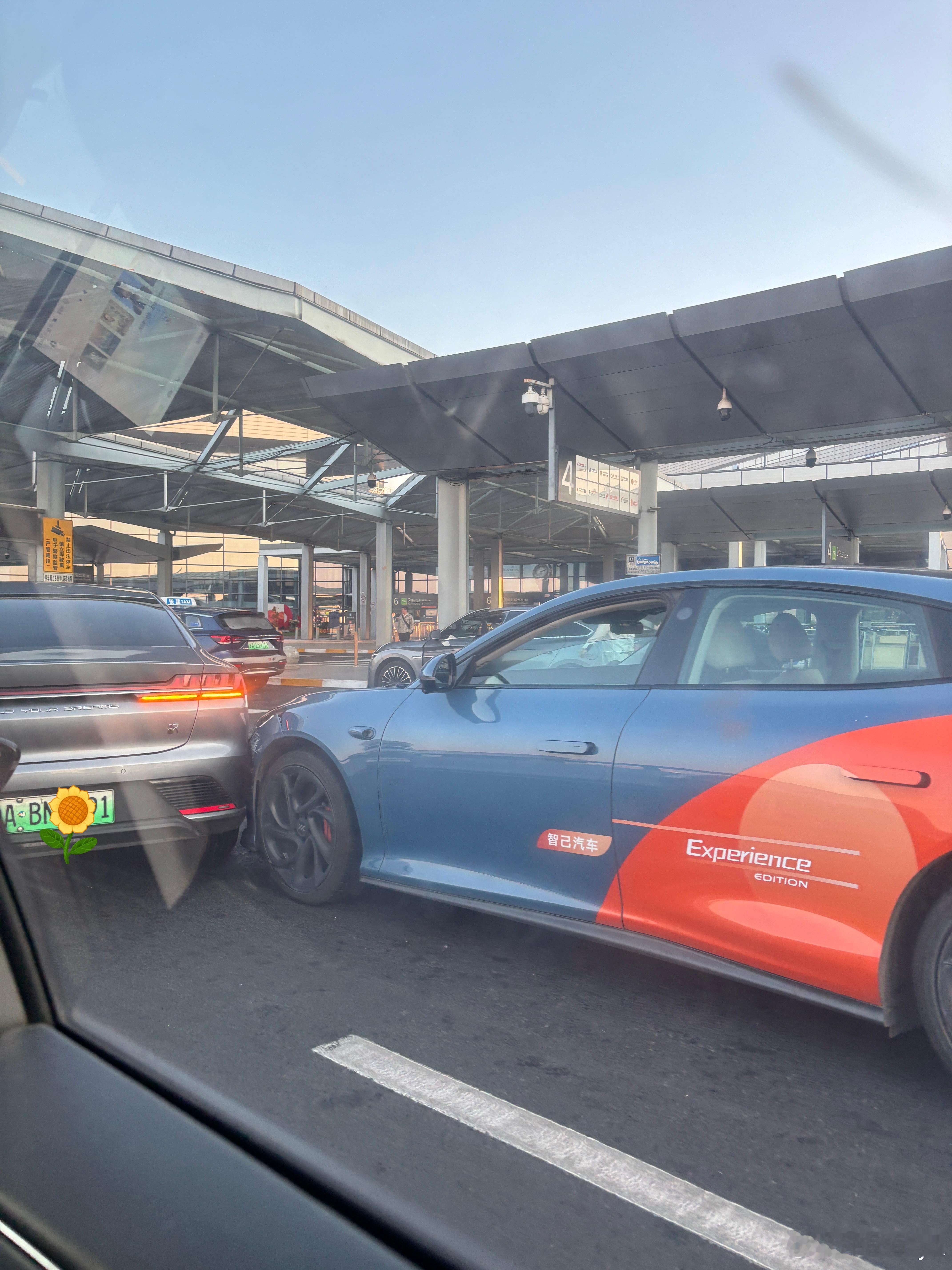 一大早在机场堵上了,发现是因为有车撞上了,只能说来机场大家都赶时间,互相让一让也不会这样