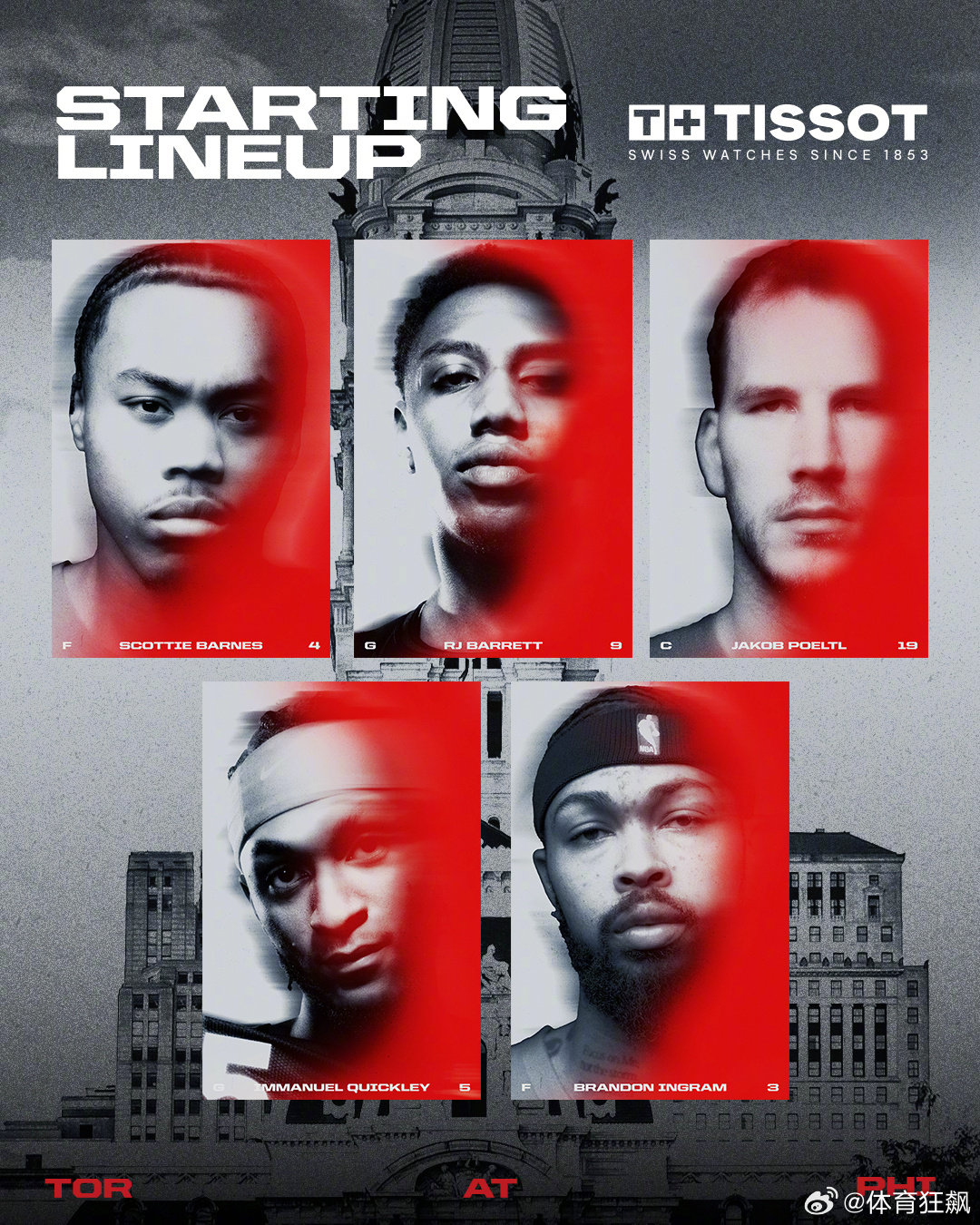 8:00客场挑战76人争取五连胜! cr:多伦多猛龙