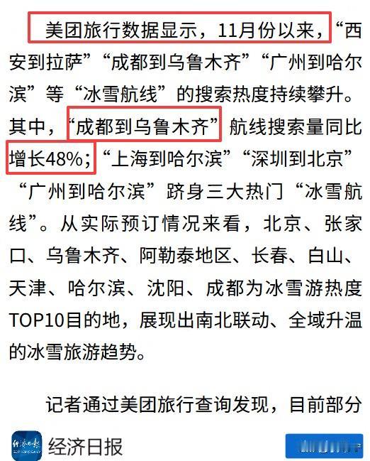 信号越来越明显了,国货东航南航等扎堆发声,直接免费退改机票!50万张赴日机票取消后,日本终于意识到不对劲了。 自从上周六以来,国内各大航司已有约50万张赴日机票被退订,大概占了飞往日本预定总量的32%。现在日本已经意识到不对劲了,野村综合研究所的专家预测:如果中国赴日游客数量大幅下滑,将导致日本GDP减少0.36%,预计损失2.2万亿日元。 大家要知道,本身日本预期今年GDP增长才0.6%,如果减少0.36%,相当于直接下滑一半多,对致力于观光立国的日本,无疑是个沉重打击。根据日本国家旅游局(JNTO)发布的数据显示,今年1-9月,中国内地赴日游客累计达748.7万人次,同比增长42.7%。也就是说,几乎每五个踏进日本的外国游客里,就有一个是中国人。 一方面确实是,日本的行为触及到了每个国人的底线,让大家无比的愤懑和激动。另一方面则是因为,好多人这下醒悟了,中国地大物博要啥风景没有,同时文旅部都罕见发声提醒,还去弹丸之地挤啥? 就拿滑雪来说,北海道的粉雪吹得再神,不如在家门口看看。最近好多网友都转向了国内平替:同样是在北纬40°到45°的黄金滑雪带,长白山、张家口崇礼以及新疆阿勒泰等地,都是很不错的选择。 比如美团旅行发布的数据,从11月第二周以来,“崇礼滑雪”搜索量同比上涨169%,此外成都飞乌鲁木齐航线搜索量增长48%、上海到哈尔滨、深圳到北京等也都是热门冰雪航线。如果是美团黑金、黑钻会员,还能在张家口、北京等多地滑雪场享受会员专属的休息室。 像吉林北大湖、崇礼万龙和新疆阿勒泰等中国10大滑雪场,大家去了才发现,不管是雪场、配套还是性价比,并不比国外差,“国雪”一旦崛起,以后哪怕小日子跟我们关系缓和,也没人去日本滑雪了。要我说,这才是日本旅游业最担忧的事情。