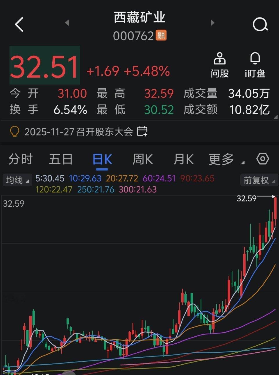 昨日v+推荐关注的$西藏矿业sz000762$又吃肉了。。