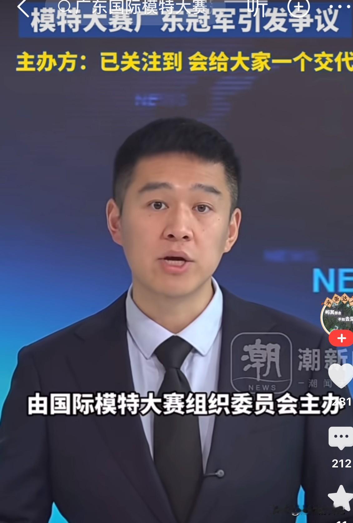 深圳模特大赛冠军获得者,因为实在哥们冠军相差甚远,被网友广泛关注和质疑,对于这样代表地区冠军的真实性表示了不理解和不接受。 大赛组委回说已经看到了这些质疑,也承诺会给大家一个交代,交代啥呢? 模特大赛,首先就是体型要符合模特的标准,就看她的腰围和大肚腩,还有那怯生生拘谨的走台样子,怎么代表一个地区的最好呢,如果她是深圳模特冠军,就说明剩下那些都不如她,深圳人都这样的审美么! 参与比赛的人,随便拉出来一个都比它强,不是我说的,是事实就摆在那里。 这里要是说没有内幕,我绝对不相信,现在我就等他们的合理解释是啥内容了。