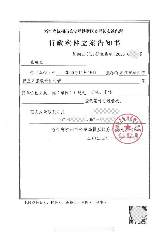 近日,因“与演员喻恩泰出轨”传闻引发话题争论的律师张敏进,接受潮新闻记者独家采访时表示,网上传言不实,均为诽谤,目前已正式向公安机关报案,并立案,她向记者提供了立案回执。她表示,该事件是卓伟等营销号团队精心策划,背后可能涉嫌非法获取公民个人信息及敲诈勒索等涉黑涉恶行为。张敏进称,酒店见面是因代理离婚案需保护隐私,营销号发布视频中内容属断章取义。她已收集证据,将追究涉事方刑、民双重责任,并呼吁彻查非法获取公民个人信息等行为。