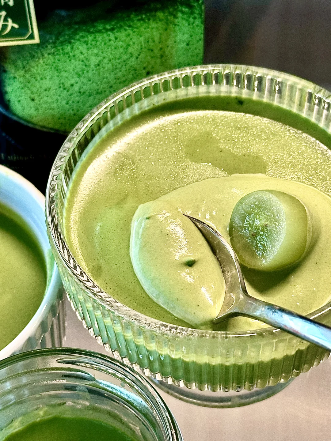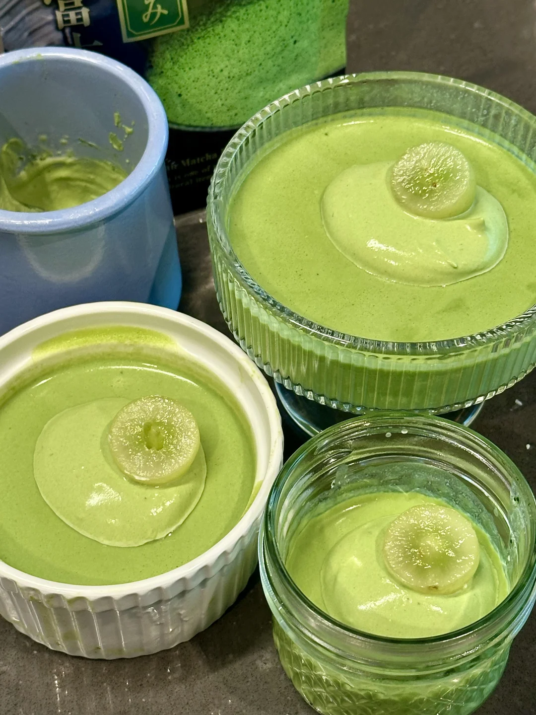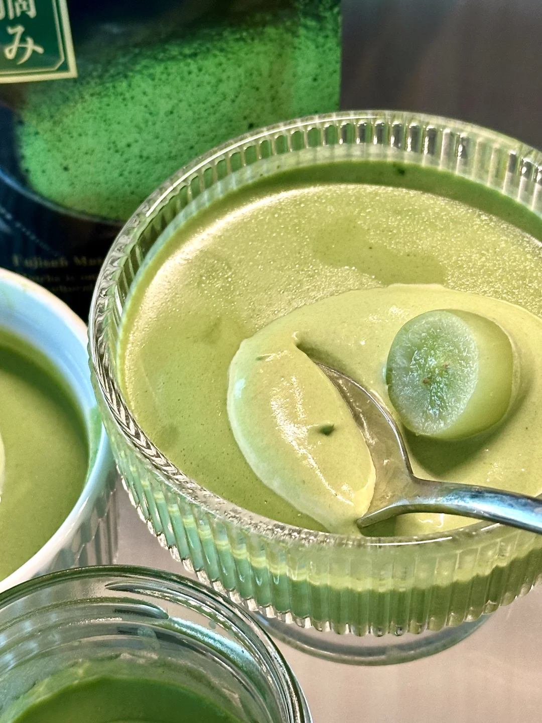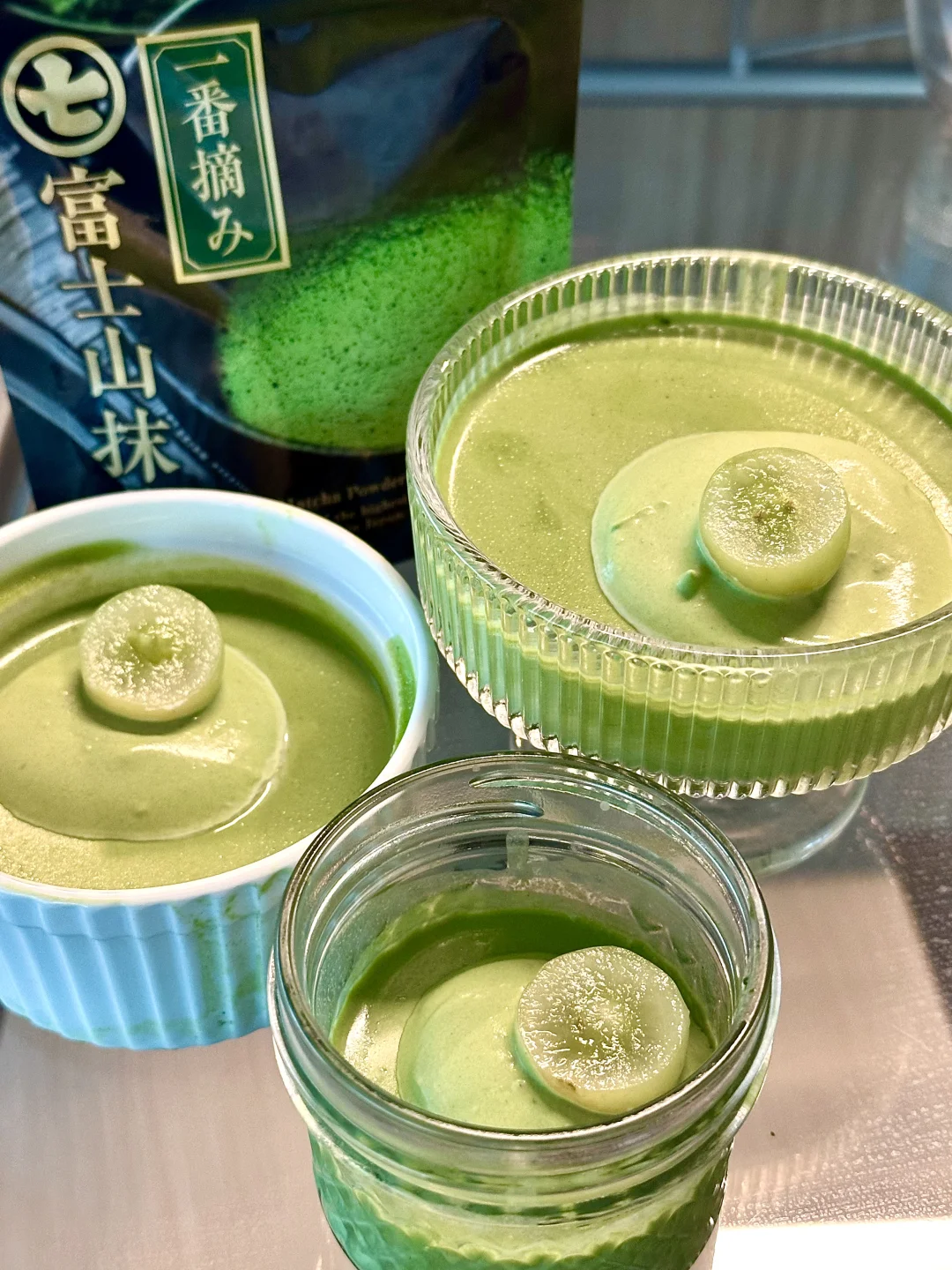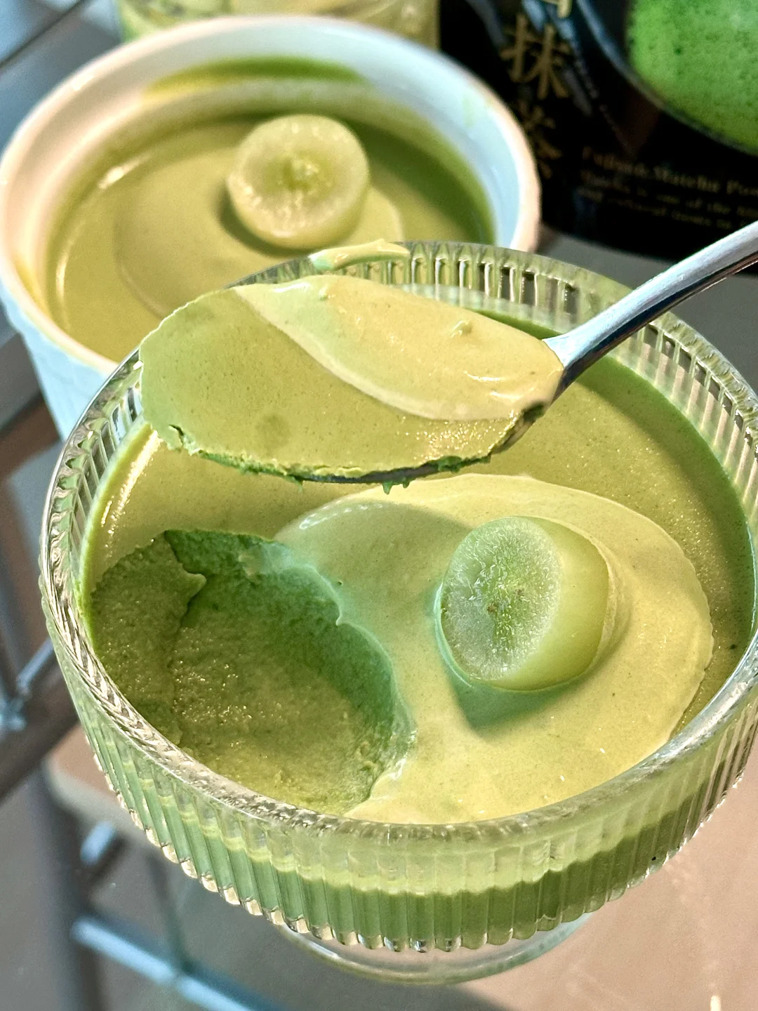 嫩豆腐本身就味道不大,加热再搭配抹茶,可以放心不会有豆腥味,除了抹茶粉,也可以尝试和焙茶,芝麻搭配!