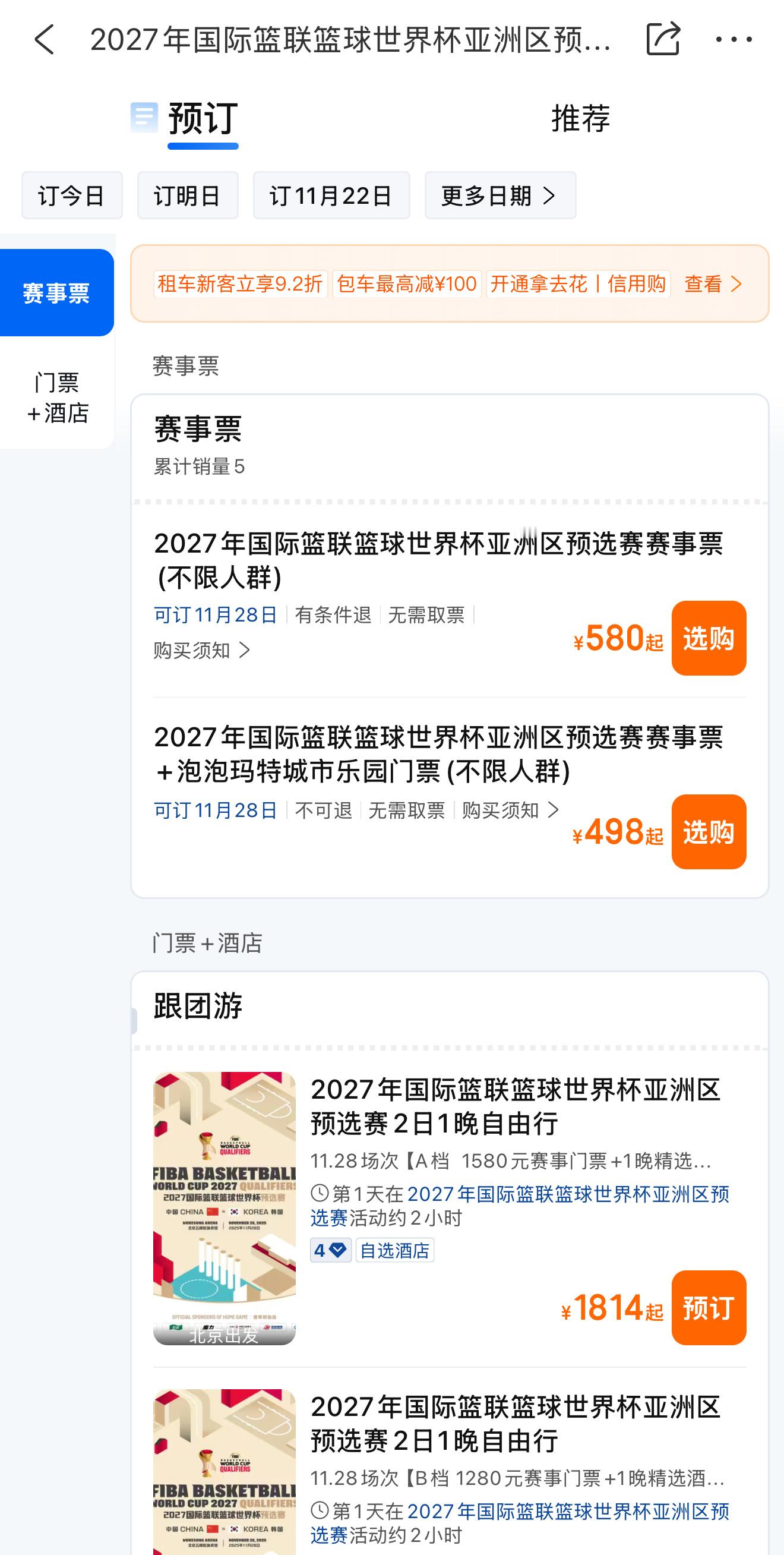 球迷们在购买中国男篮世预赛门票时多了一个选择,携程上也可以买了,他们在搞一种新玩儿法,将体育比赛和旅游产品打包,比如一次性买完门票+机票+酒店,看完 ,还可以去逛泡泡玛特乐园
