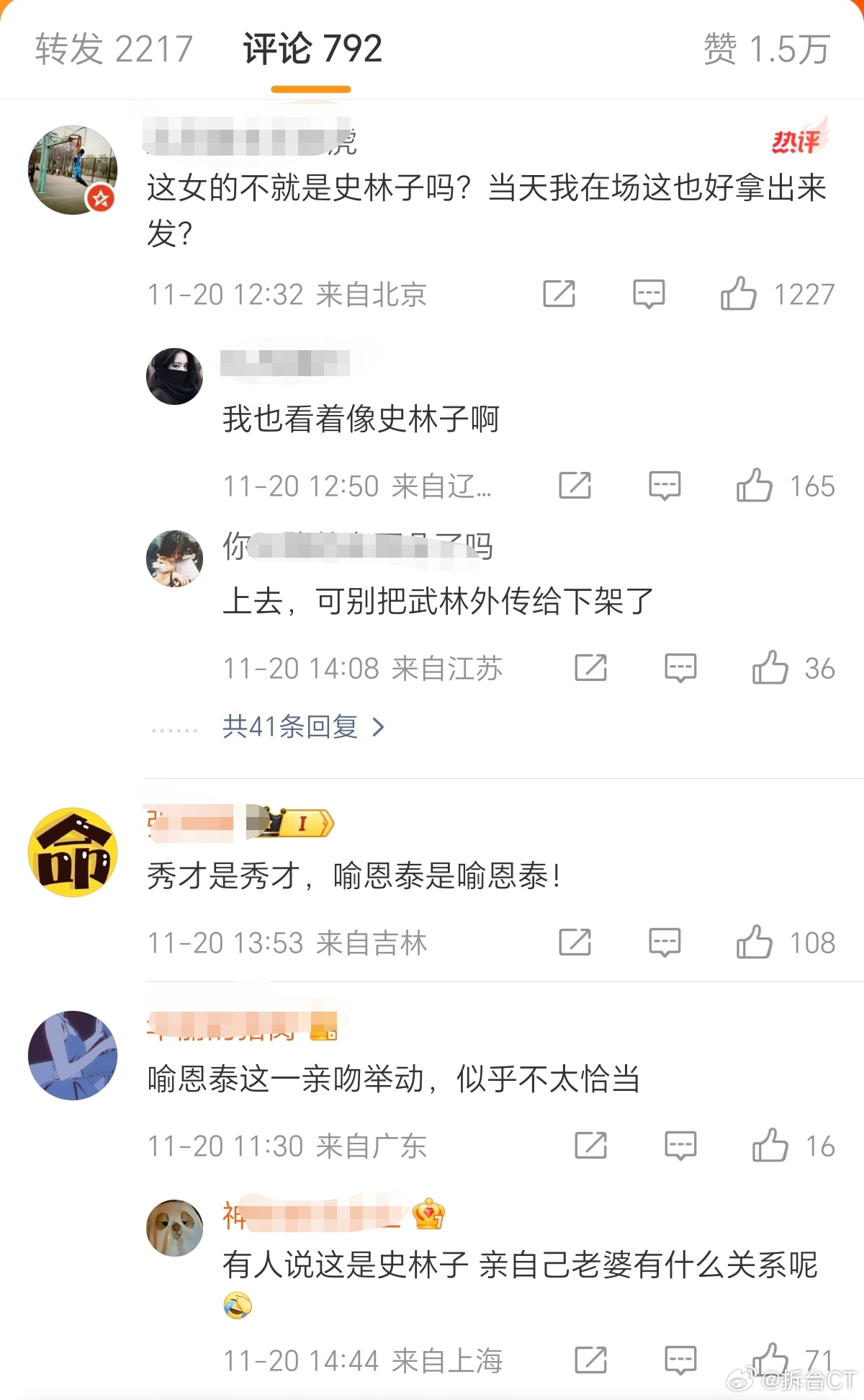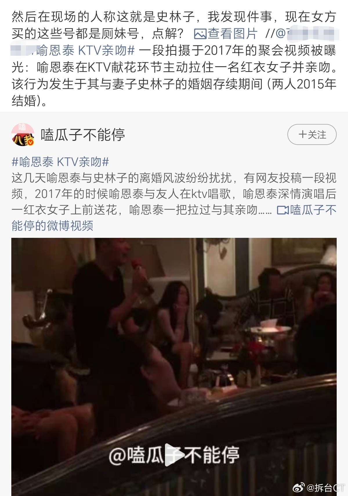 最新的这个瓜,好像是馊的。我看有自称在现场的网友表示,喻恩泰当时在KTV里亲的人,就是史林子。