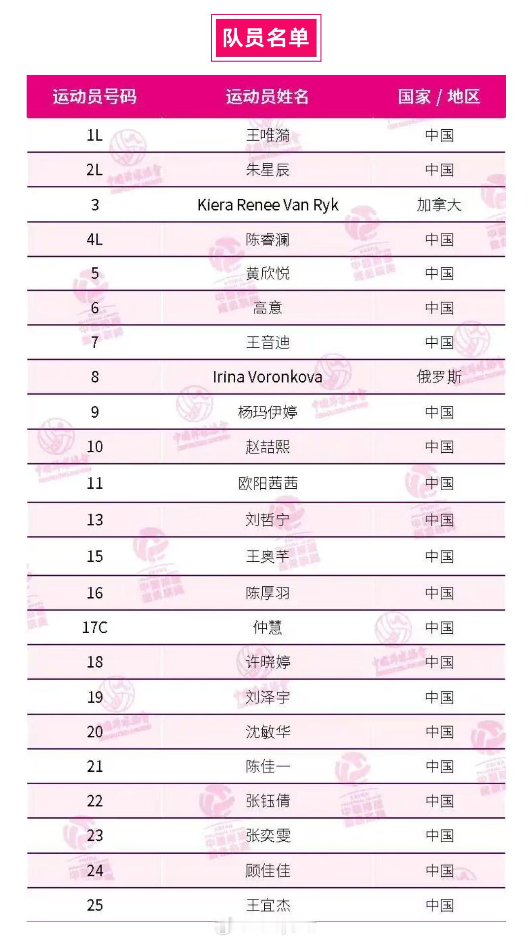 2025-2026赛季中国排球超级联赛上海女排大名单