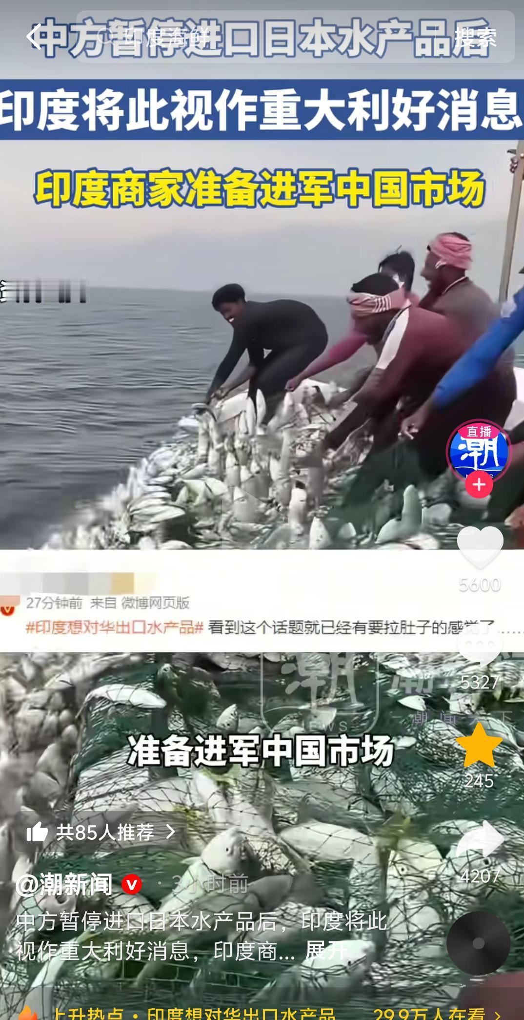 核污染刚滚,大肠杆菌就来?印度水产欲抢中国市场。 咱刚一刀切停了日本核污染水产,印度那边立马眼睛放光,赶着来“填坑”。见中国市场空出供给缺口,印度水产界的算盘都快敲碎了,连带相关股票疯涨好几天,那架势仿佛稳拿替代名额似的。 可这自信到底哪来的?印度水产的卫生烂摊子谁不知道?重金属超标的新闻没断过,细菌污染更是家常便饭,之前出口欧美都被频繁退货,压根没过关。网友一句话戳穿真相:“刚送走核污染的‘毒水产’,难不成要接大肠杆菌超标的‘印度特产’? 别光盯着缺口就丢了底线,中国消费者要的是放心吃的安全货,不是“矮子里拔将军”的将就。印度与其急着抢份额,不如先把卫生搞好,没了安全,再热的市场也接不住,纯属白忙活!日本核污水海鲜