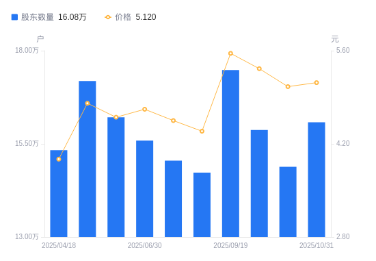 日期A股户数(户)流通A股户均持股数(股)户均持股市值(万元)2025-11-101555887100.853.712025-10-311607776871.673.522025-10-201488527422.193.762025-09-301587016961.563.712025-09-191748216319.653.512025-07-311472767501.613.292025-07-181505037340.773.342025-06-301558937086.963.352025-06-101621406813.913.132025-05-301718496428.943.09