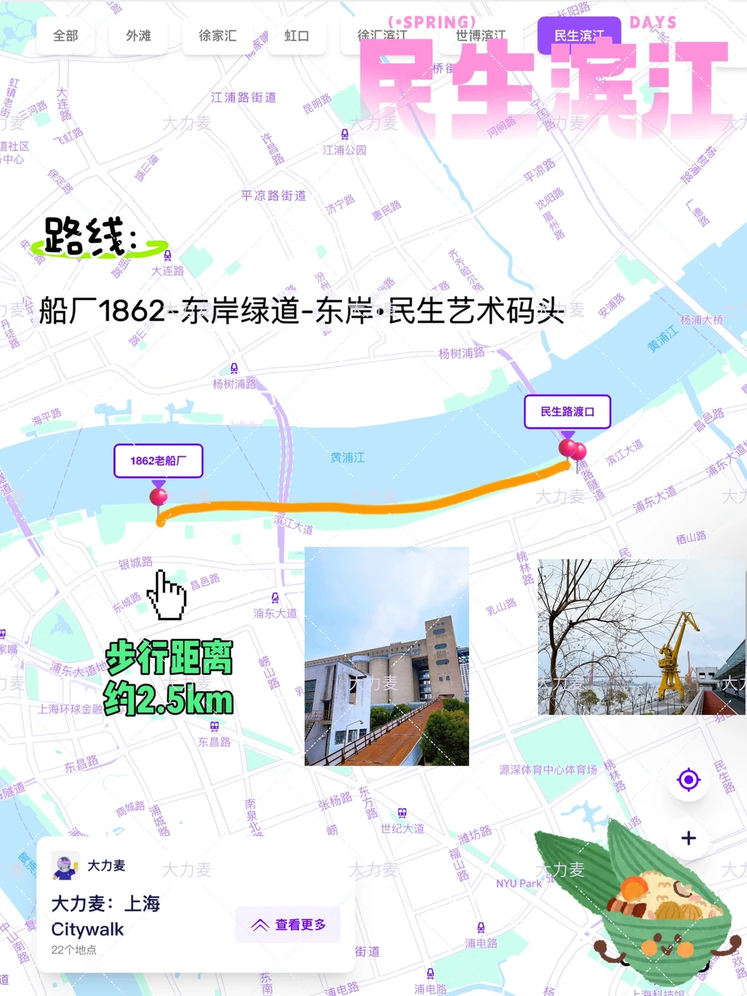 🗺️路线:船厂1862-东岸绿道-民生艺术码头