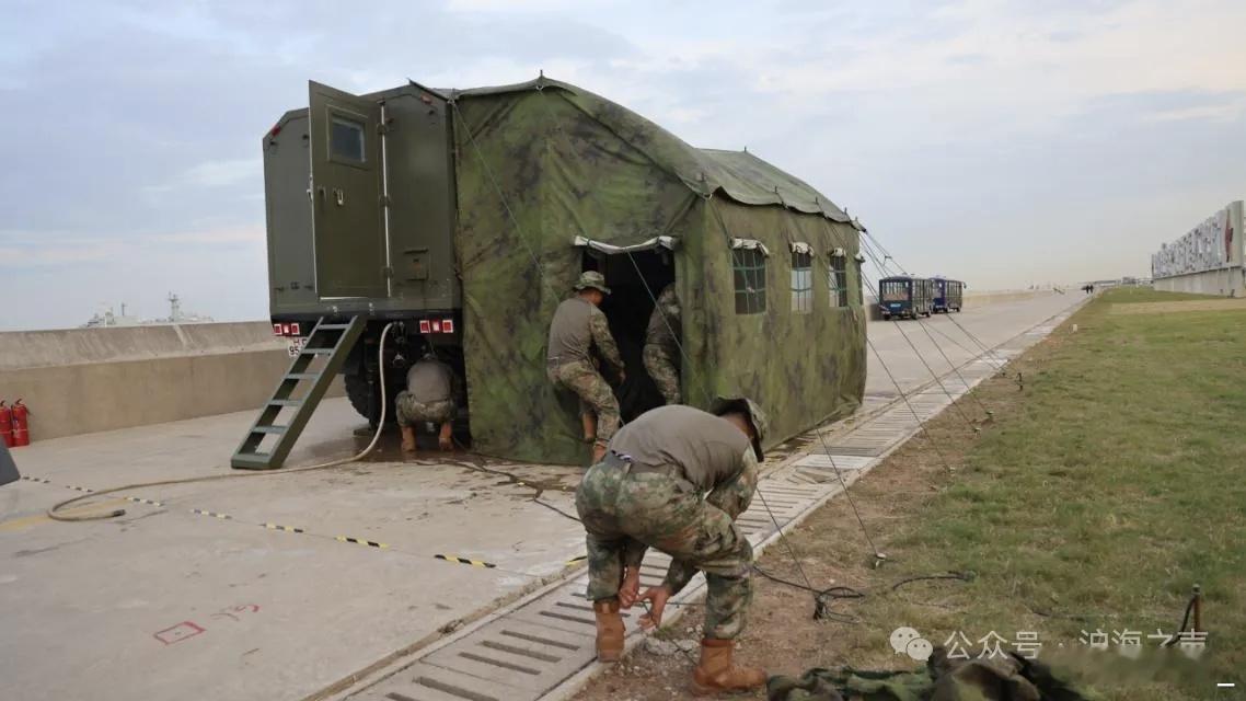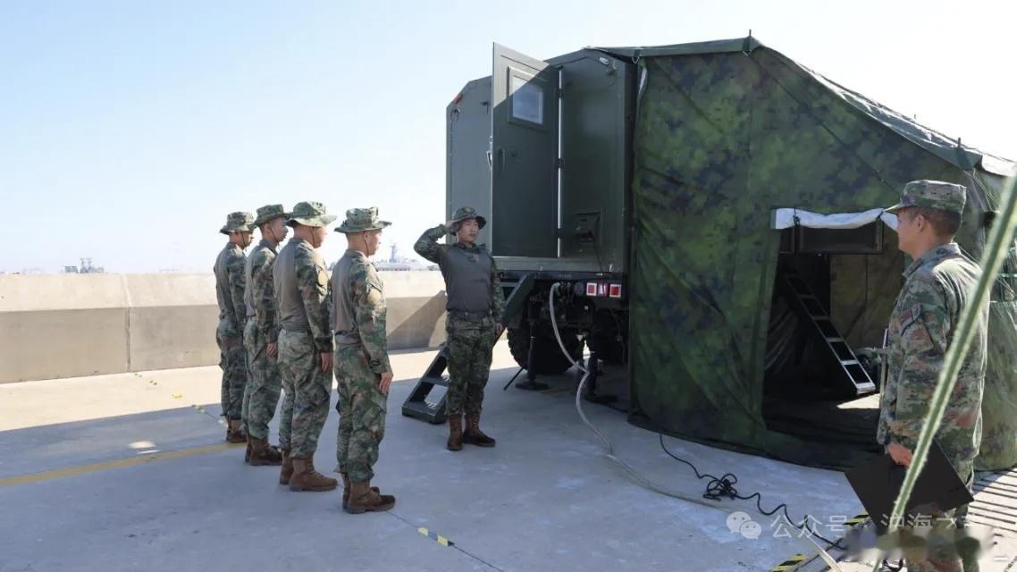 某基地举行年度炊事技能竞赛性考核,背景可见075和071。