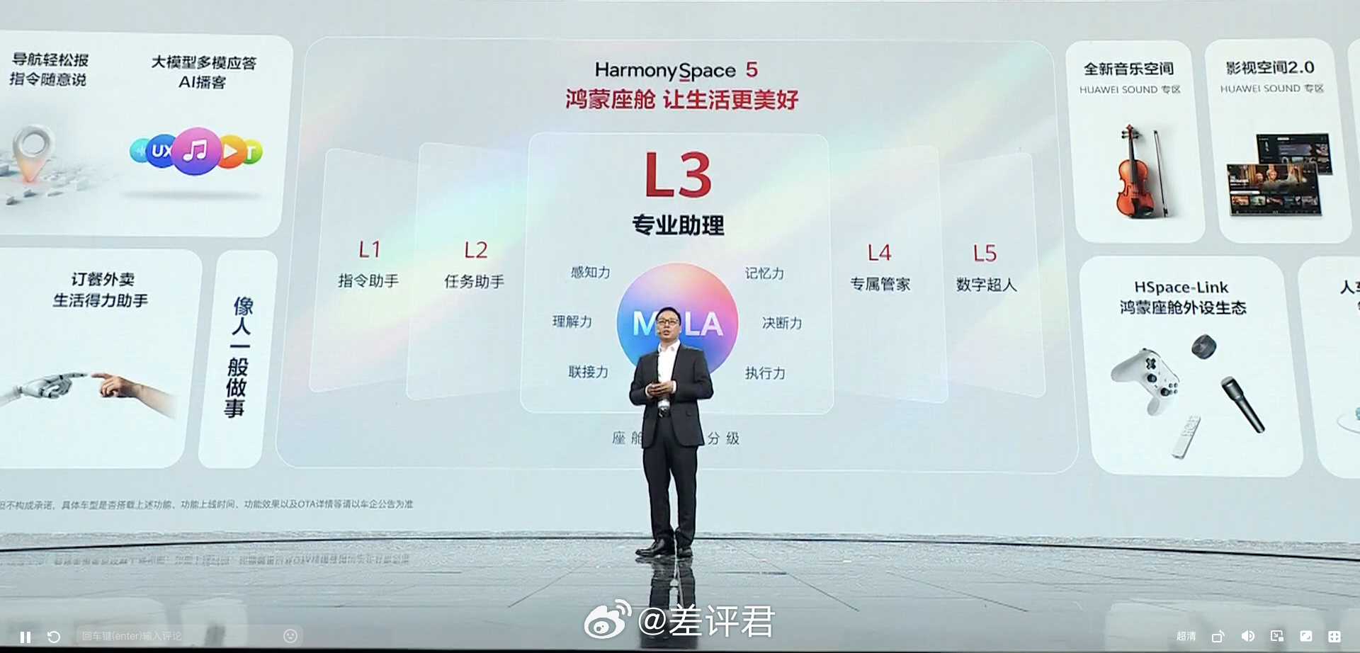 在今晚华为乾坤生态大会上,公布了几个信息:ADS pro 版本将支持城区全场景 NCA 领航;ADS max 版本增加了动物识别、130km/h 内爆胎靠边停车、极限会车时的主动避让;华为智驾预计将在 2026 商用高速 L3 ,今年已经在北上广深等城市测试了;乾崑开放智驾不同场景的底座接口(缴费,停车,充电,洗车等),促成生态发展;智能座舱Harmony Space5 搭载了全新MoLA架构,预计能达成“L3”专业助理级;正式发布和东风合作的奕境,和广汽合作的启境品牌。