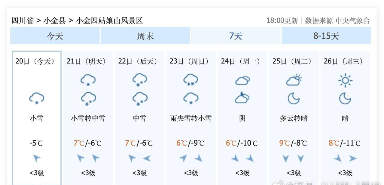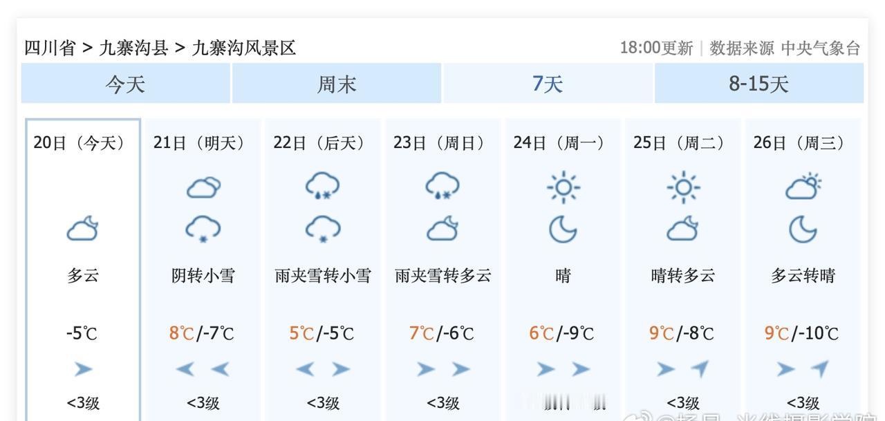 噢!11月21日到23日,成都川A大军最爱的川西,九寨沟--四姑娘山,又要下雪啦!川西,很多地方,大雪纷飞啊!不错不错,喜欢看雪玩雪的重庆人成都人,有福了!可以去川西! 当然,重庆成都飞西藏拉萨的飞机上,窗外就可以看到满血复活的连绵千里的雪山,极其壮观啊! 话说,这周末,大家要去九寨沟、毕棚沟、四姑娘山、达古冰川、丹巴藏寨吗?!可能会超级堵车哦!雨雪天气,冰雪路面,开车一定要小心,要注意安全啊!光线摄影世界曾兰谈天说地 @光线摄影学院曾兰老师