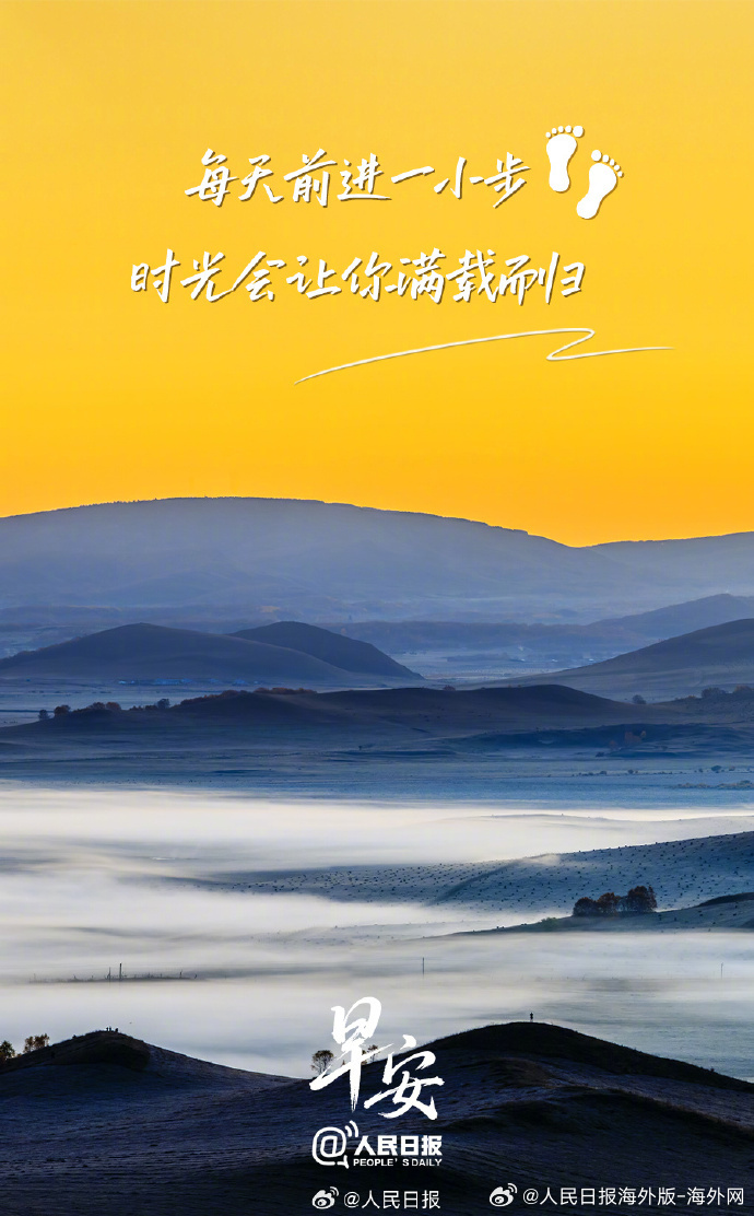 【轻装前行,自在从容地走好脚下每一步】,那些年初的期待、未竟的心愿,你兑现了吗?不必焦虑,也别慌张,踏实走好每一步,坚定前行,把剩下的每一天过成自己喜欢的样子,就是对这一年最好的收尾。新的一天,愿你带着热爱出发,既有全力以赴的勇气,也有从容不迫的底气。早安,!(人民日报)
