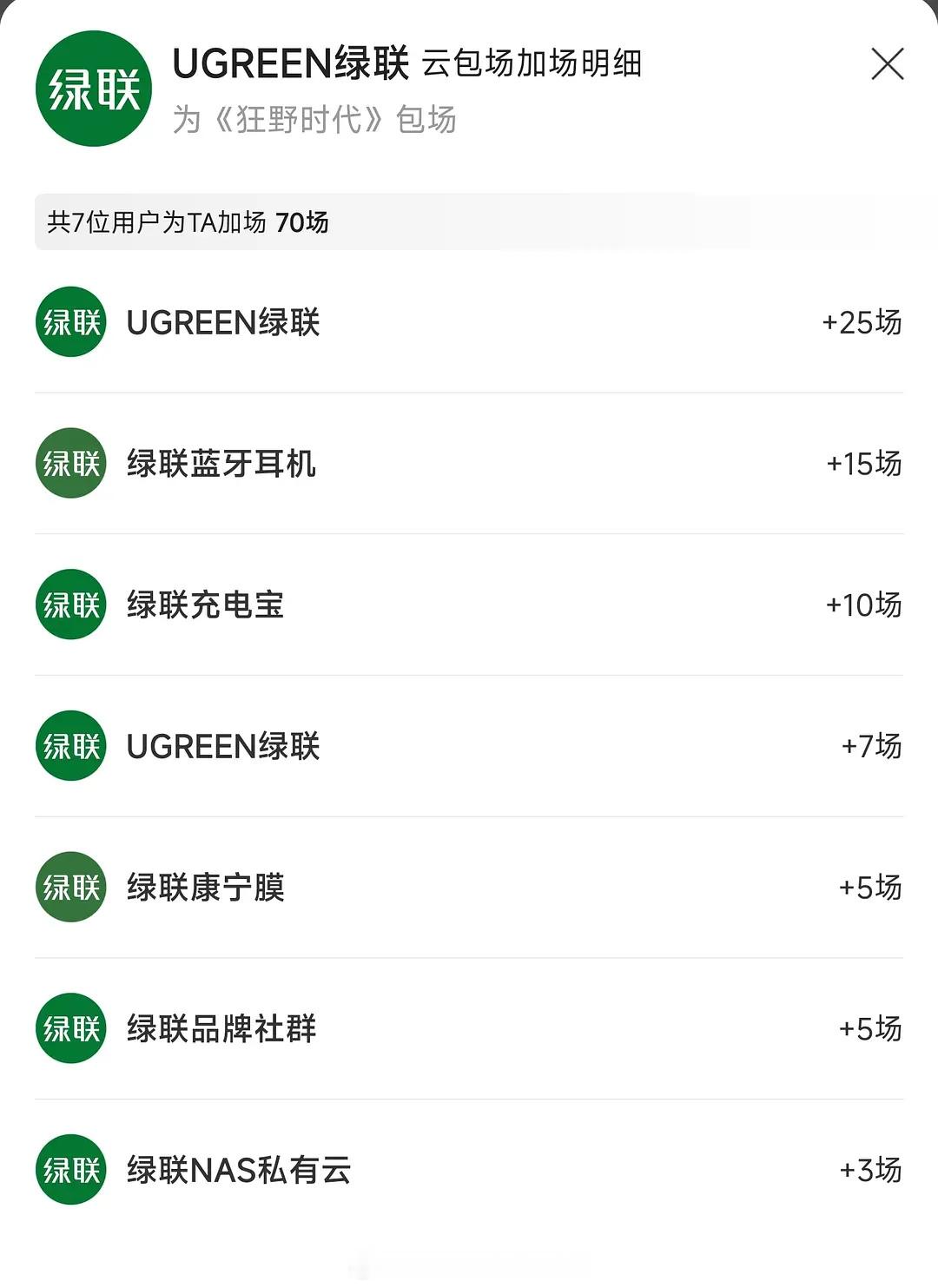 易烊千玺新电影《狂野时代》,各大品牌霸霸都来包场了,理想包了100场,绿联包了116场!好大方!