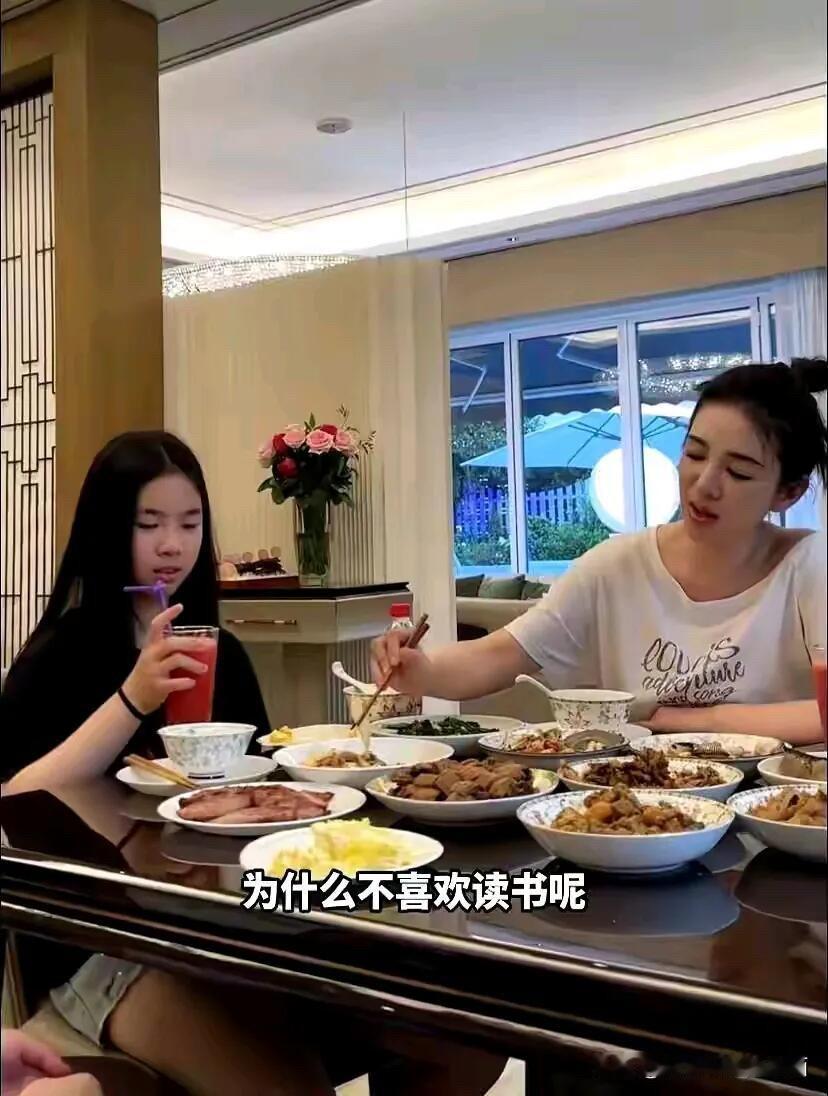 女明星黄奕在家里一边吃饭,一边跟女儿谈心,看来明星跟普通人一样,都有点焦虑孩子的学业,不过48岁的她看起来还挺有气质的,没有怎么变老。 一家人好像也不怎么多人吃人,做这么一大桌子的菜能吃的完吗?