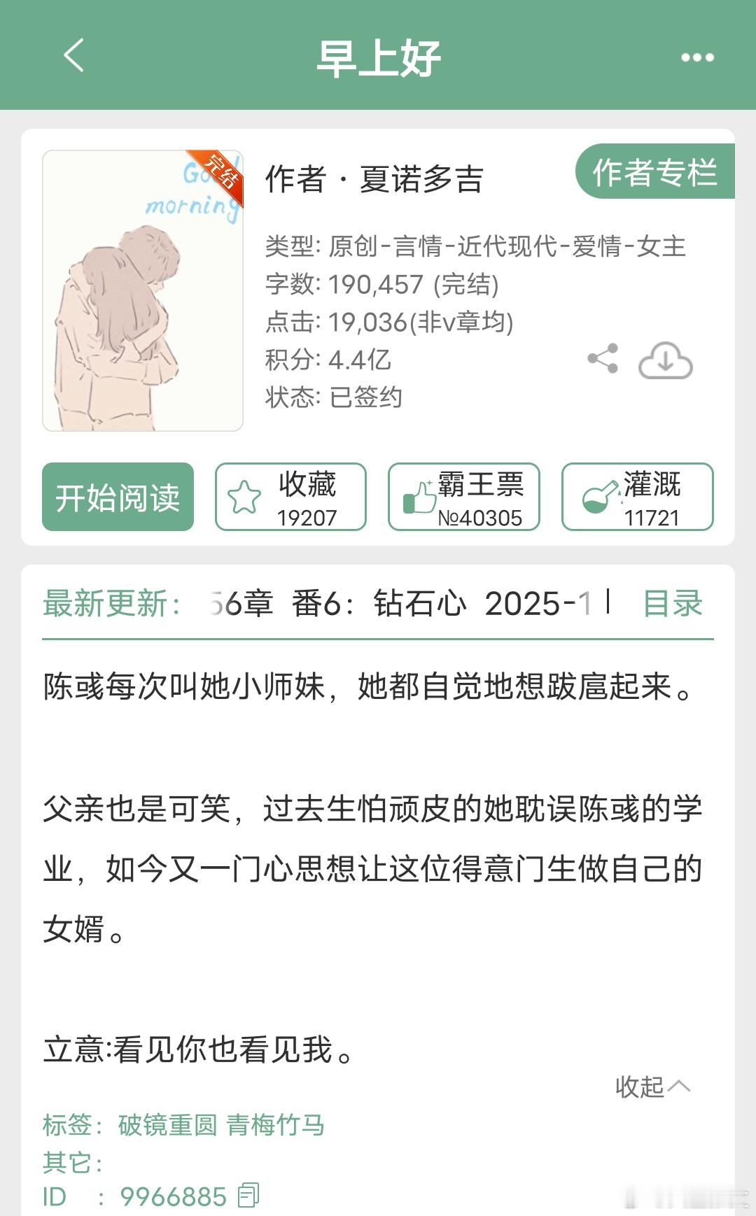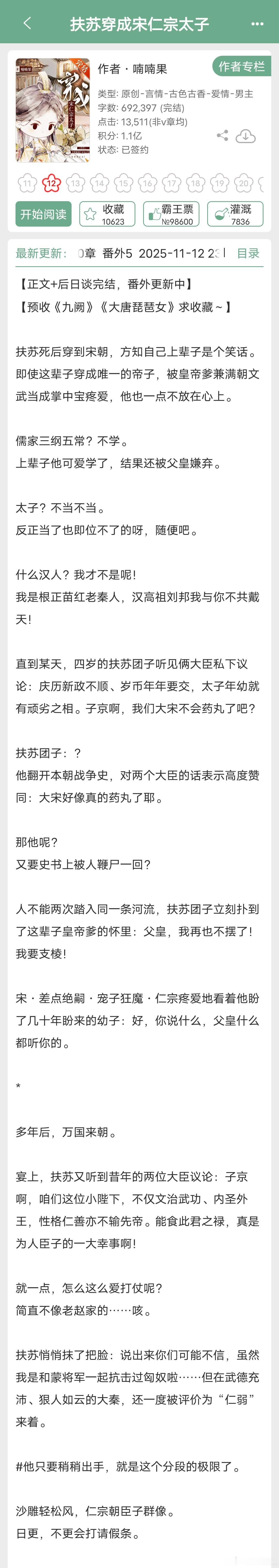 想看1、6蹲蹲大家的反馈1.《竟不还》不若的马甲2.《不可名状的路人甲》江水朔3.《扶苏穿成宋仁宗太子后》喃喃果4.《感情用事》两个概念5.《剑尊是我的限制傀儡人》写离声6.《退伍女兵南下淘金》清澜皓月7.《早上好》夏诺多吉8.《八戒八戒,心肠不坏》云山昼9.《在航天大院搞科研》山河与星