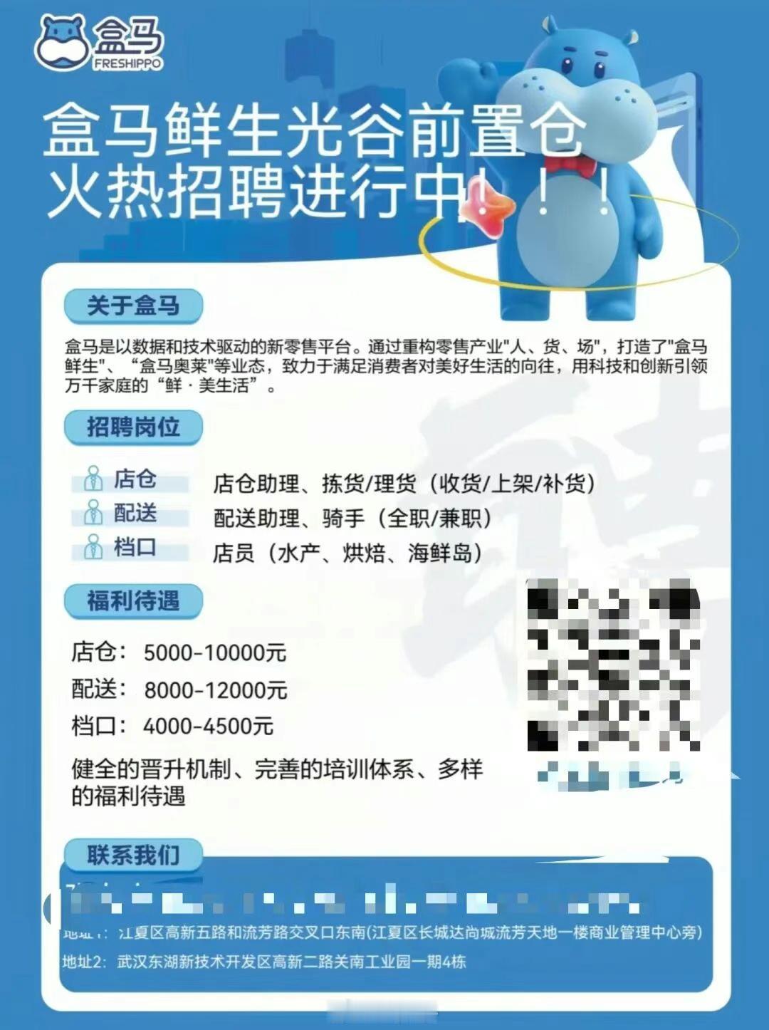 盒马前置仓在光谷开启疯狂扩张模式 继佛祖岭流芳天地前置仓投入运营后,高新二路关南工业园的、光谷天地二期均已招兵买马。其中,高新二路关南工业园的前置仓计划于11月27日开业 据介绍,盒马前置仓是通过将仓库设立在社区周边三公里范围内,实现以仓为店的概念。消费者下单后,商品由专业的骑手从仓库直接配送至指定地点。市民在官方APP上下单,最快30分钟即可送货到家。简单讲,相当于是盒马鲜生线上门店。 盒马鲜生武汉·光谷天地[地点]
