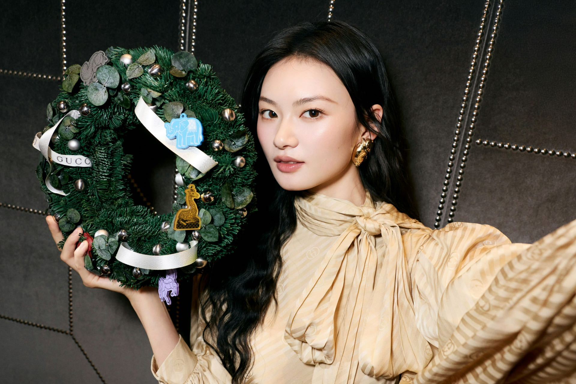 贺聪一袭浅米色复古条纹裙亮相Gucci成都场,缎面质感衬出慵懒松弛,搭配同系列包袋,自带法式复古滤镜,松弛感拉满~