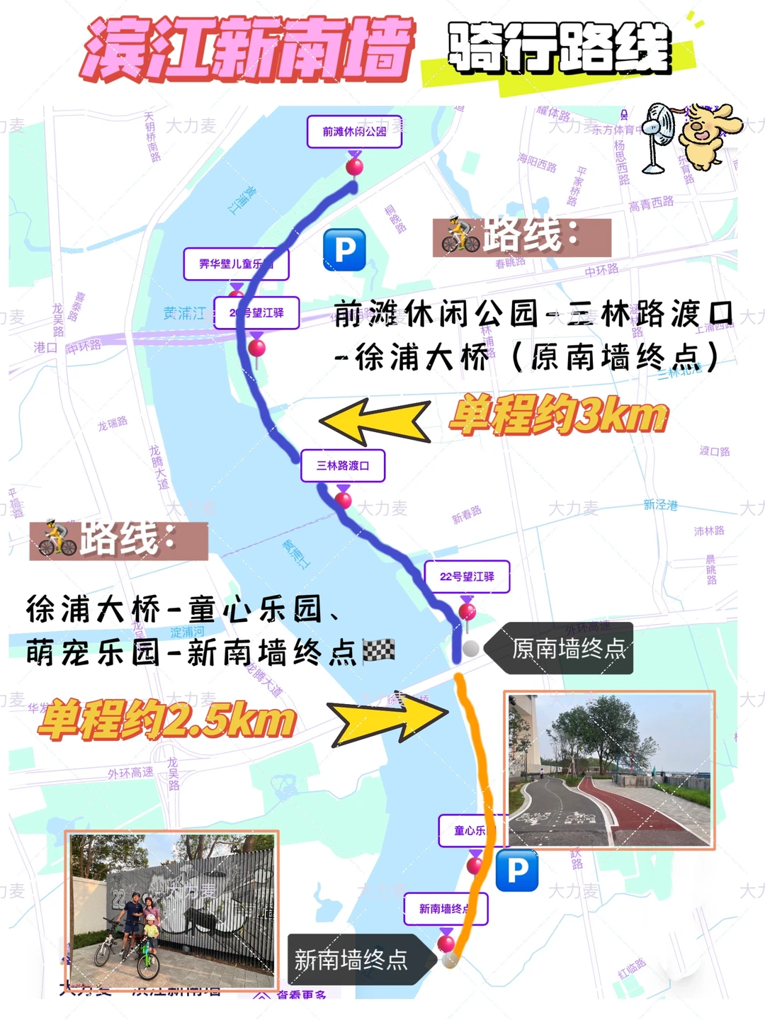 参考了不少车友的剧透,将此次打卡新南墙的骑行起始点选在了前滩休闲公园,马路对面就有停车场(🅿️前滩体育公园),至南墙新终点的骑行距离约为5.5km,往返11km的强度也刚刚好👌