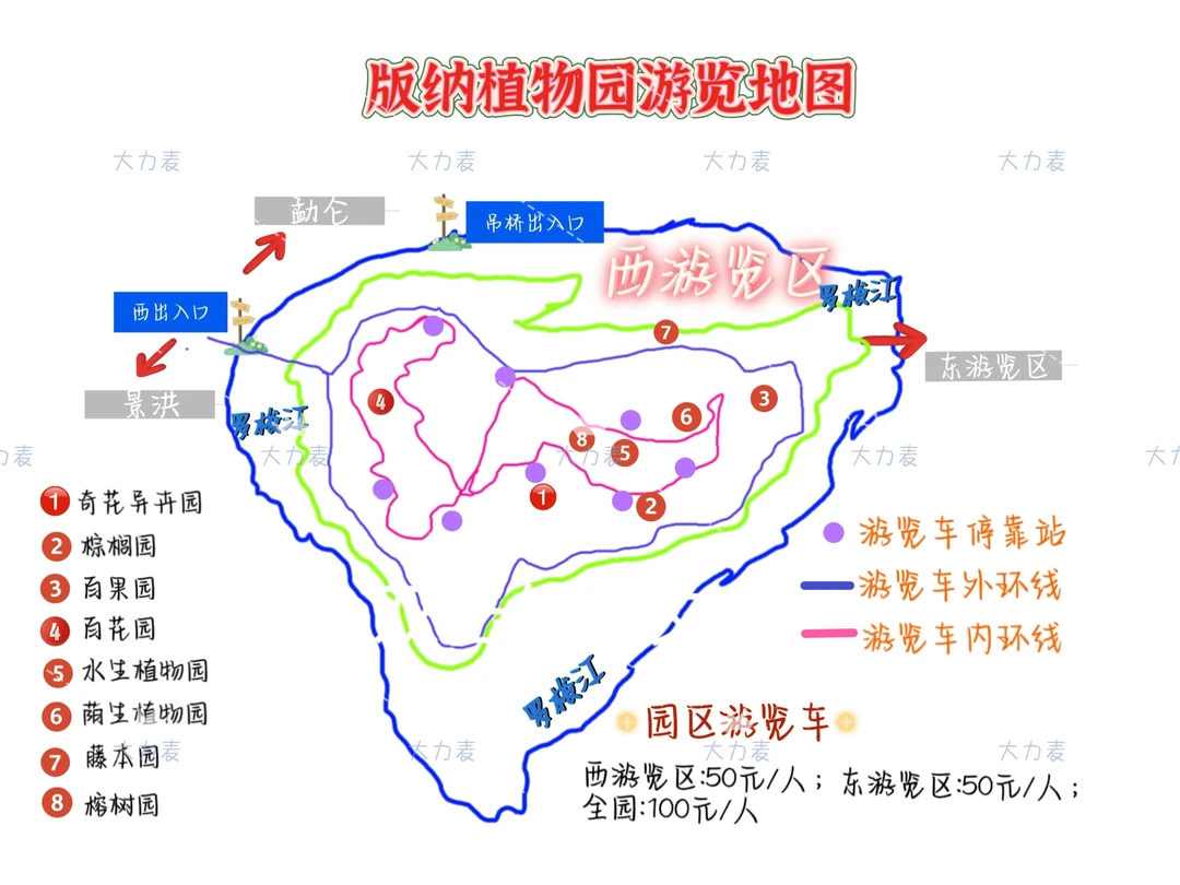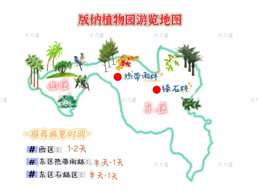 版纳植物园的面积大约有16个故宫那么大,分为东、西两大园区。