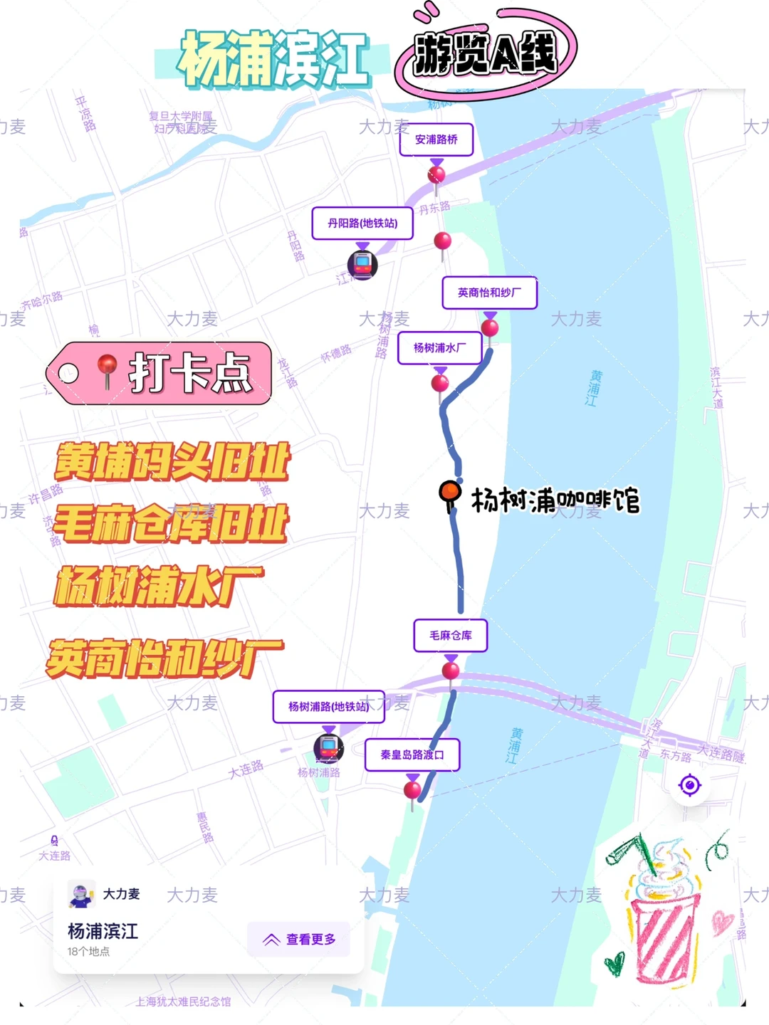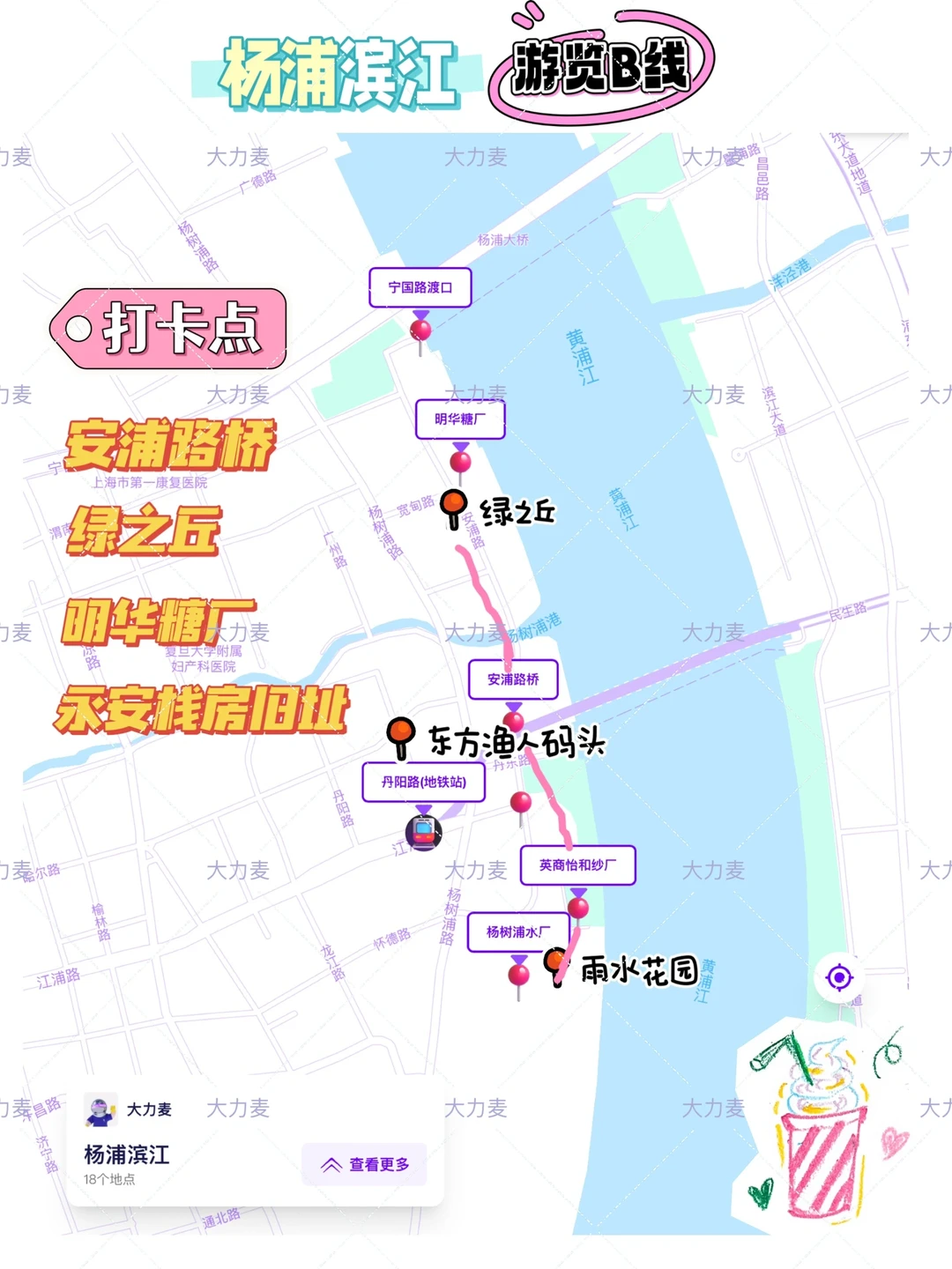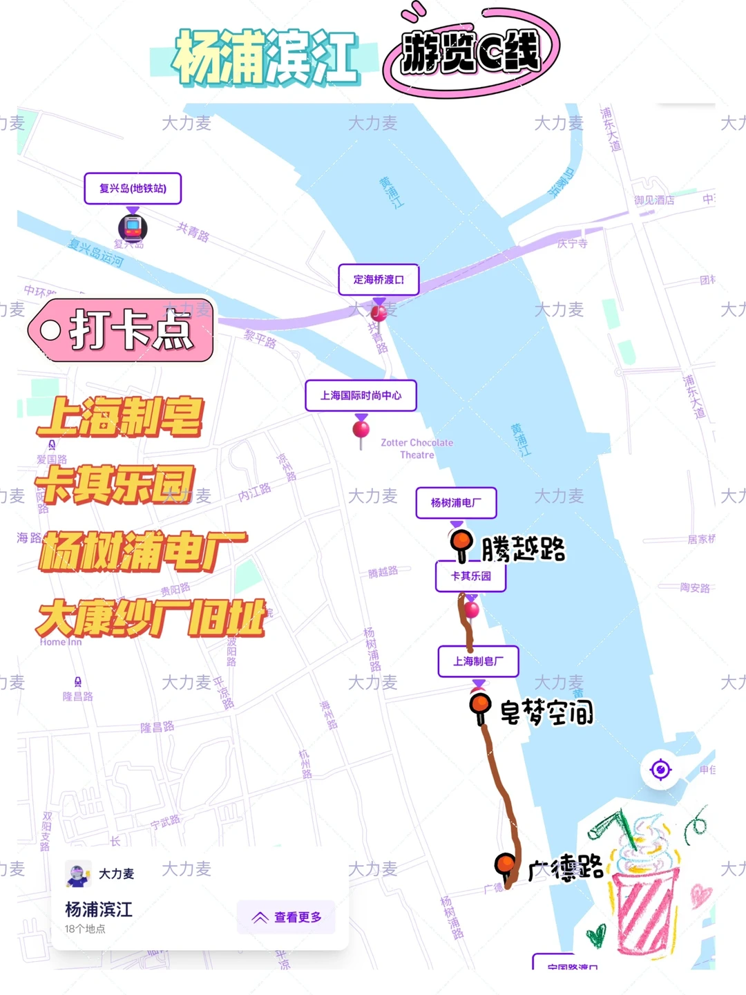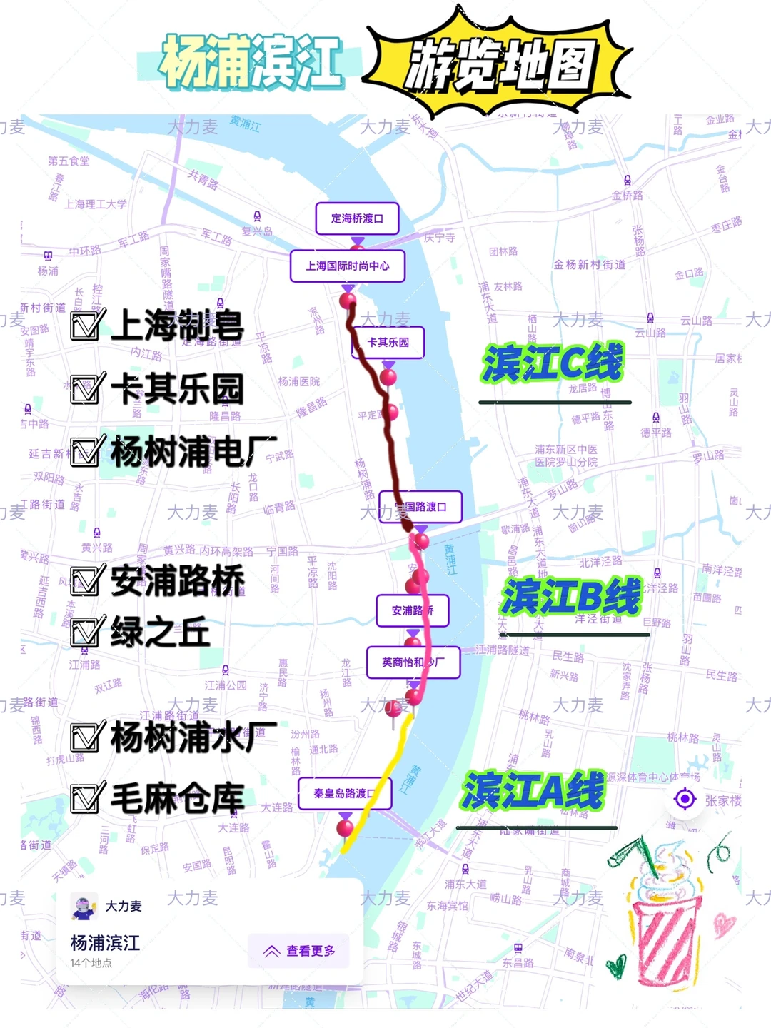特色:杨浦滨江的精华段,东方渔人码头周边补给充足。