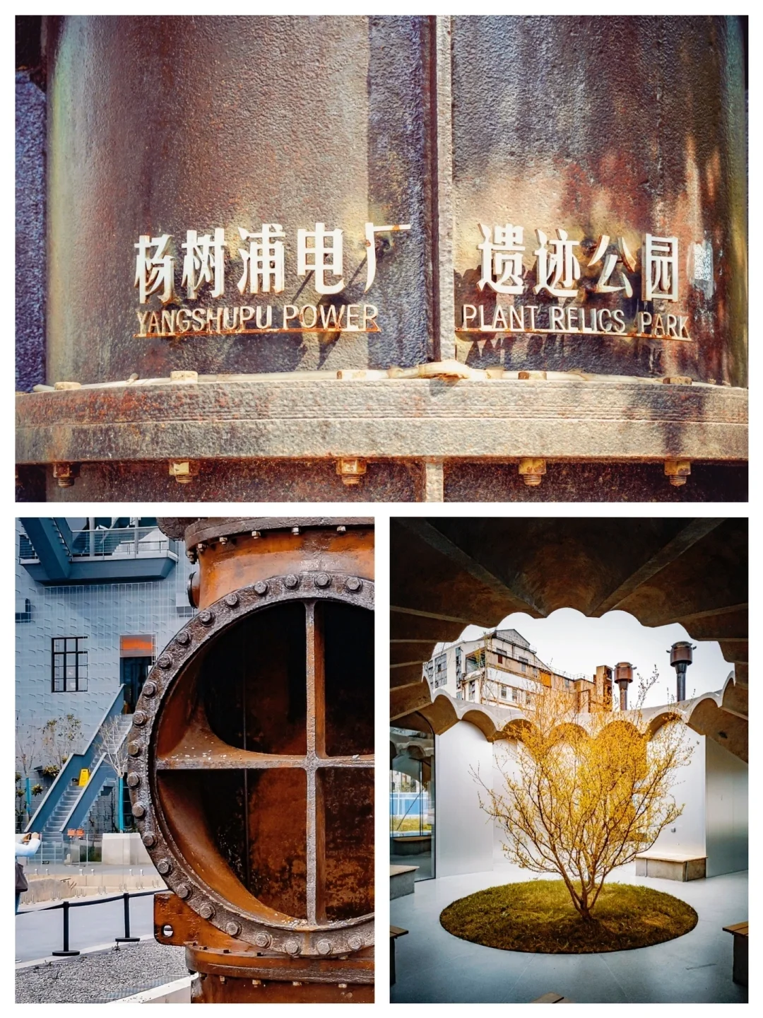 📍杨树浦电厂(遗迹公园):曾经的远东第一火力发电厂,仿佛一朵废墟里开出的花。巨型的红色吊机+净水池咖啡厅+有煤灰罐组成的灰仓艺术空间。