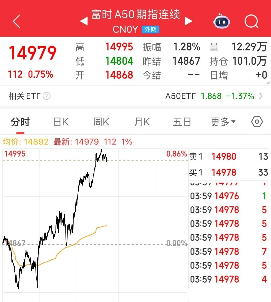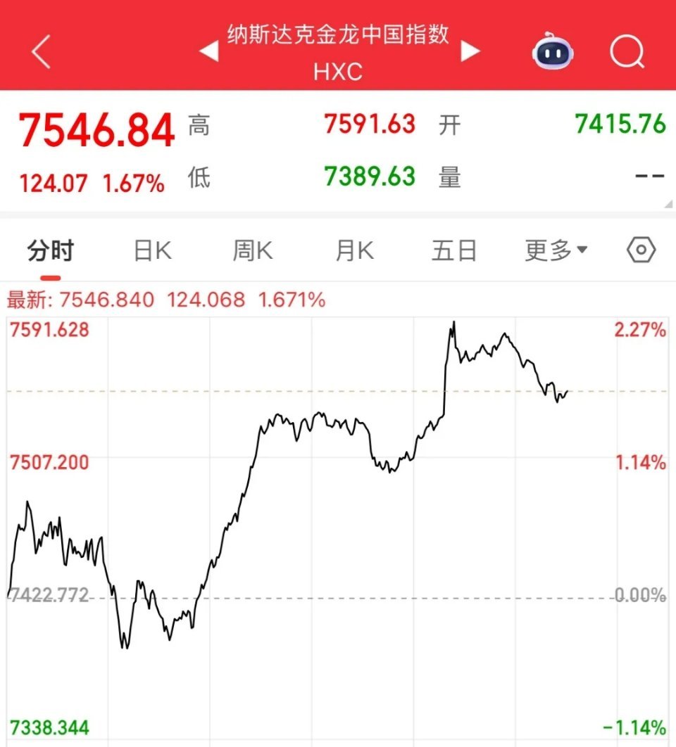周一可以高看一眼了,要反弹了,A50夜盘猛拉涨幅0.75%,恒生指数期货涨超1%,纳指金龙中国指数涨幅1.6%,中概股普遍上涨阿里巴巴从跌幅超3%拉升翻红,小鹏涨幅1.8%,拼多多涨幅0.4%,蔚来涨幅超3%,理想汽车涨幅超2%,京东涨幅超2%,美股三大指数全线探底回升,全线涨幅超1%,行情总是在极度悲观中看见曙光。