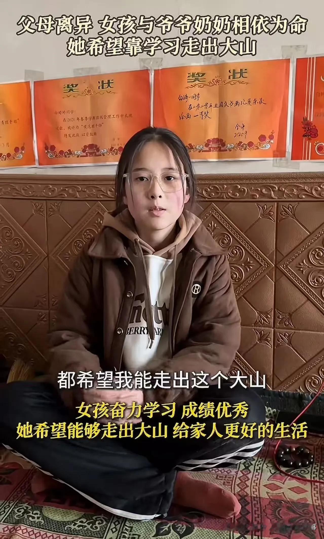 一碗陈腌菜看哭全网!父母离异的女孩一句话,藏着多少心酸的懂事 吱呀作响的木门被推开时,志愿者们没料到,大山深处这间简陋的土坯房里,藏着如此戳心的一幕。10岁的小梅(化名)正端着碗,就着铁锅里暗沉发黑的腌菜,小口啃着干硬的冷馒头,那碗腌菜泛着陈年的咸酸气,一看就放了许久。 “小朋友,怎么不吃点肉呀?”志愿者强忍着鼻酸蹲下身,轻声问道。小梅抬起小脸,那双本该盛满童趣的眼睛里,满是与年龄不符的平静,她指着腌菜小声说:“阿姨,肉太贵了,很贵很贵的。我们平时能吃上这个,就已经很好了。” 这句轻描淡写的“很好了”,却像钝刀割心,让在场的人都红了眼眶。爷爷抹着眼泪道出了这个家的难处:小梅幼时父母离异,母亲一去不返,父亲为了谋生远走他乡打工,一年难回一次家,家里的重担全压在了年迈的他和小梅身上。小小的小梅早已褪去稚气,放学放下书包就去地里帮忙,回家后喂鸡、烧火、扫地,把所有家务都揽在身上,从不喊累。 破败的屋子却被收拾得一尘不染,碗筷摆得整整齐齐,而最亮眼的是那面土墙——贴满了“三好学生”“学习标兵”的奖状。这些鲜红的纸张,是小梅对抗苦难的勋章。她拼命读书,心里藏着个坚定的念头:要走出大山,赚很多钱给爷爷奶奶盖新房子,让家里天天都有肉吃。 当志愿者问她若见到妈妈想说什么时,小梅的眼泪瞬间决堤,哽咽着哭道:“我想问她为什么不要我了?如果我们一家人在一起该多好……”。哭声里的委屈,是她藏了无数个夜晚的孤独。 网友看完纷纷破防:“懂事的孩子太让人心疼了,那句有腌菜就很好,比哭嚎更戳人”“满墙奖状是她的光,希望这道光能照亮她走出大山的路”。这碗腌菜装着生活的苦涩,可小梅的懂事与坚韧,却酿出了最动人的力量。愿这份过早到来的艰辛,能被更多善意接住,也愿每个在困境中挣扎的孩子,都能被世界温柔以待,不用再把“吃苦”当作常态。农村水腌菜 腌小青菜