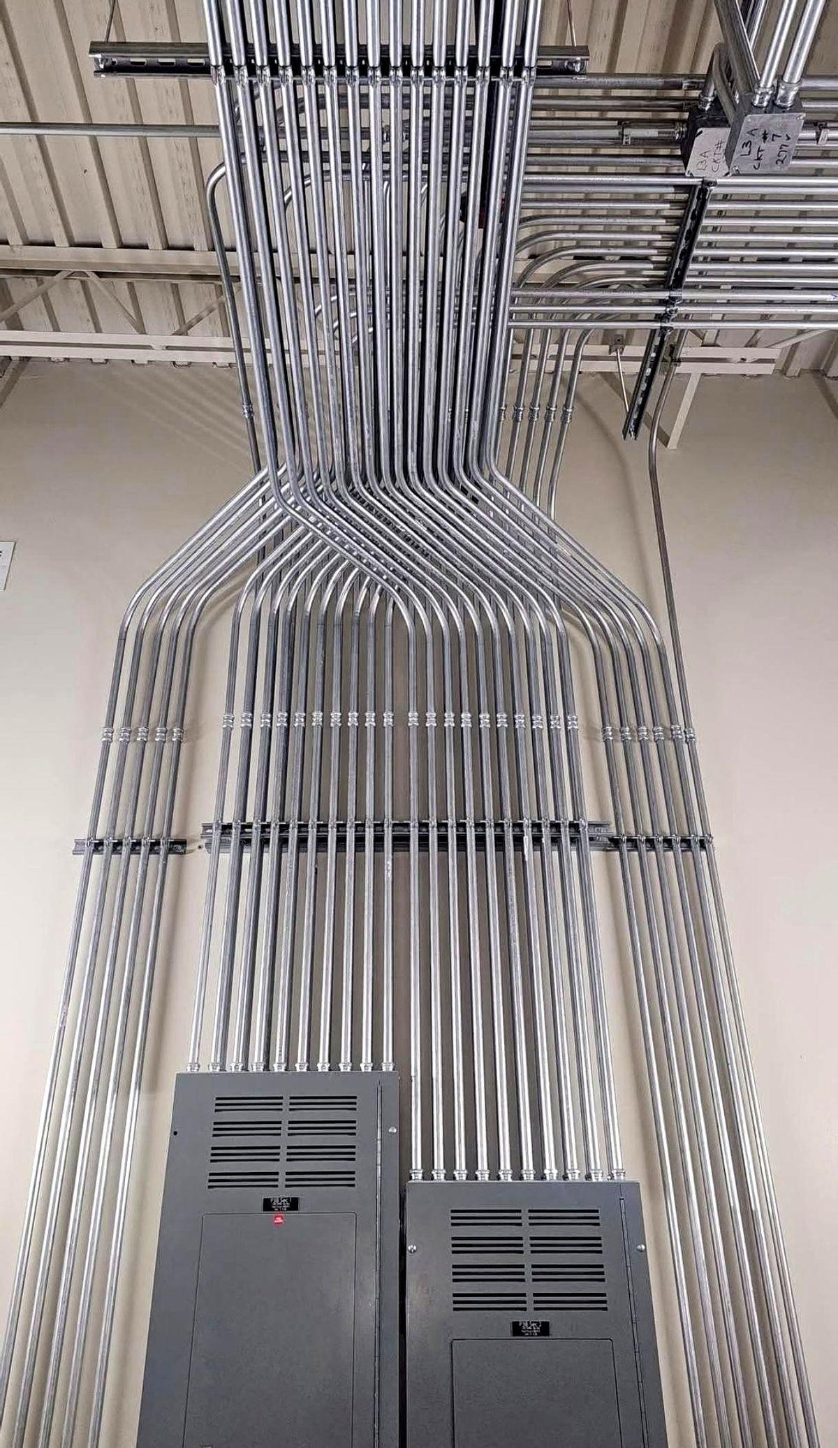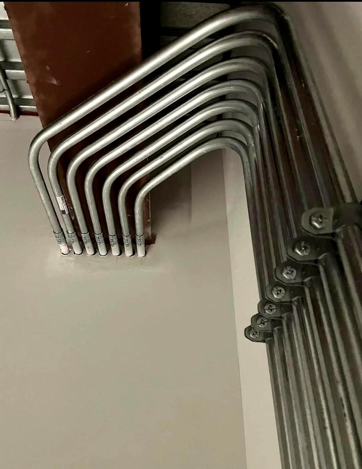 在加拿大干电工重要的是会走管。 按照北美的供电标准,走金属管防火,40刀一小时,体现专业性。 北美电气布线安全规范要求高。 中国的习惯做法是密集布线要走桥架。 这样做才能有高薪,外人一看:妈呀,太酷了,工艺水平太高了,必须高薪。 这个,外行人看着漂亮,内行人不这么干,线路摩擦力特别大,一般直走一个弯。 国家越发达,越注重细节,中国以后也会慢慢重视起来的。 执行标准与成本的问题而已。 钱到位,管间距都能按几个丝的要求给你弄。