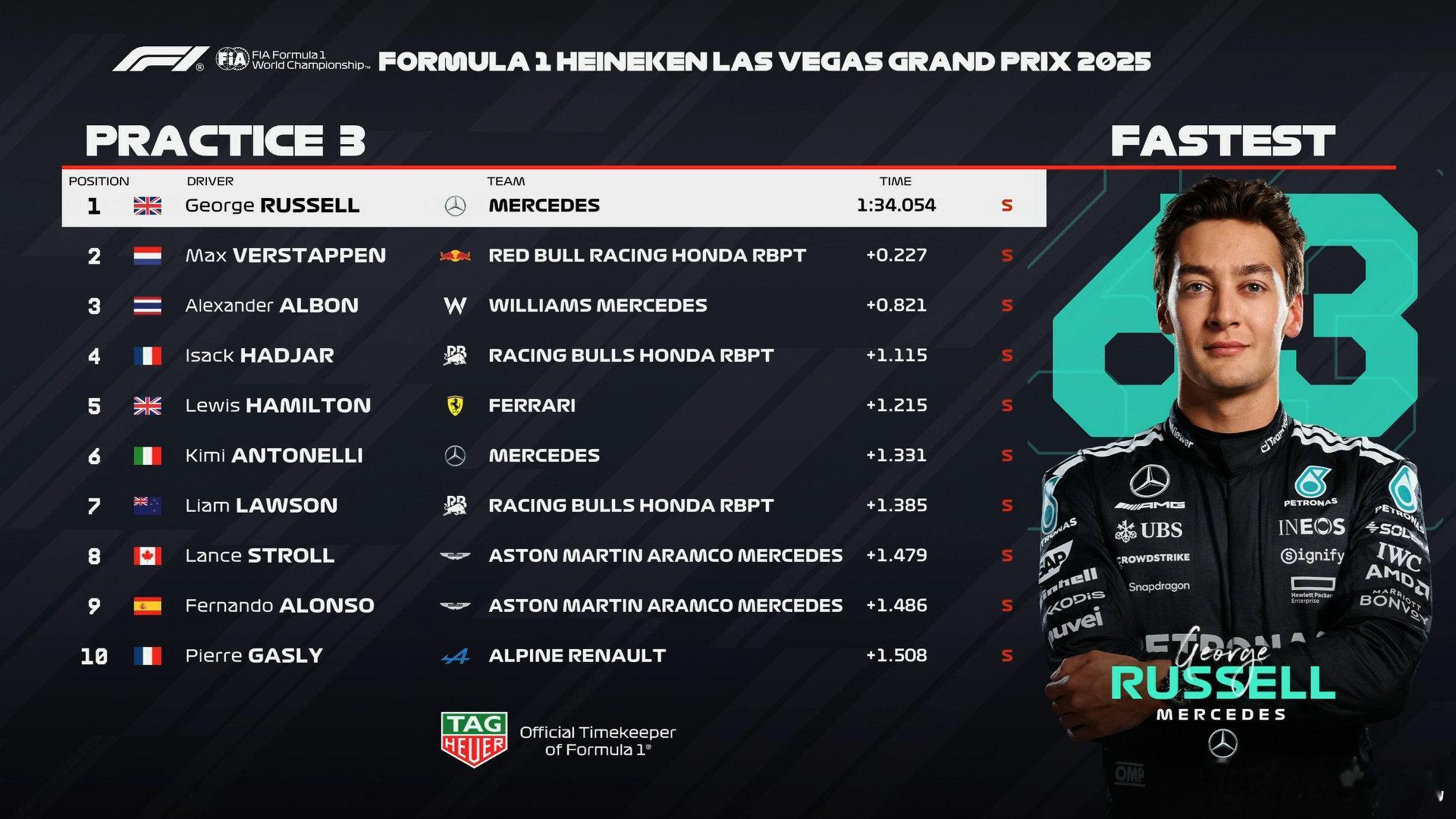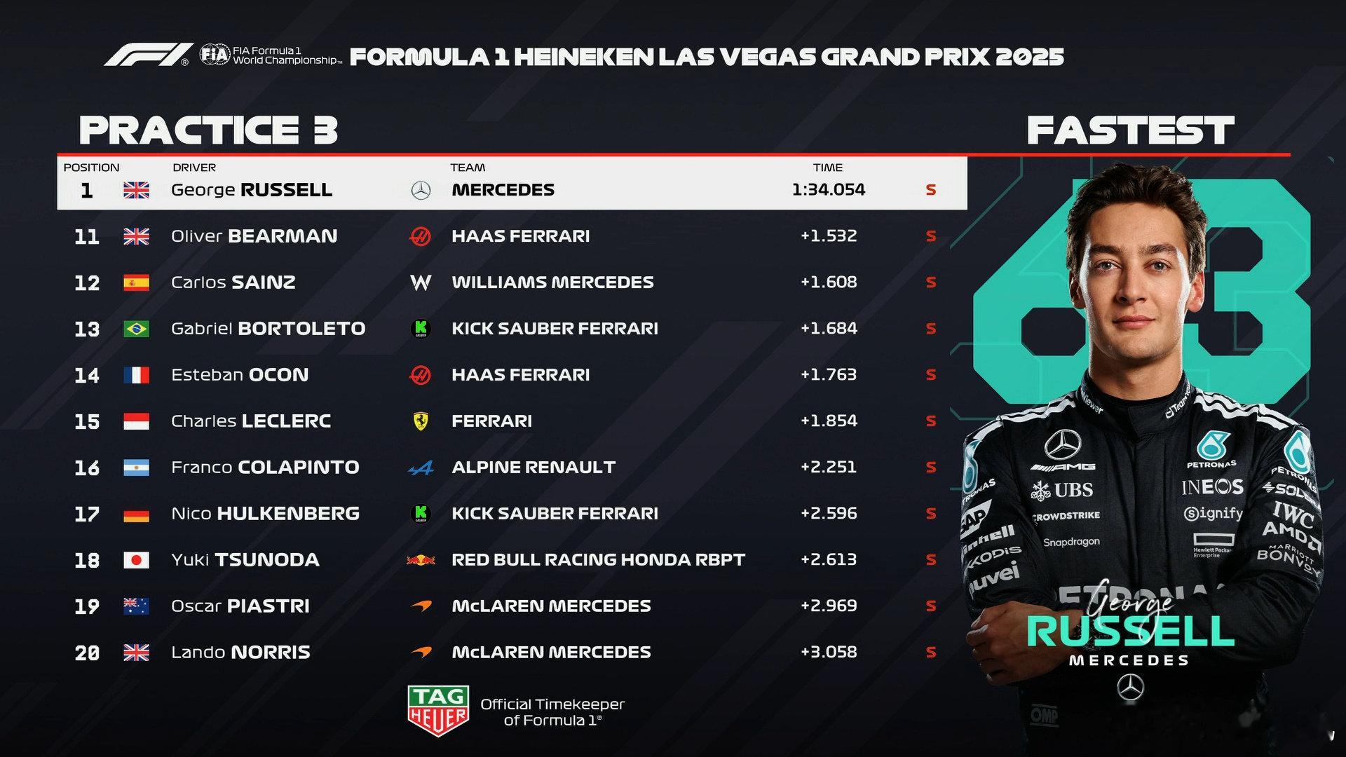 拉斯维加斯大奖赛三练成绩表如图,北京时间12点排位赛! cr:刘耀_FLy