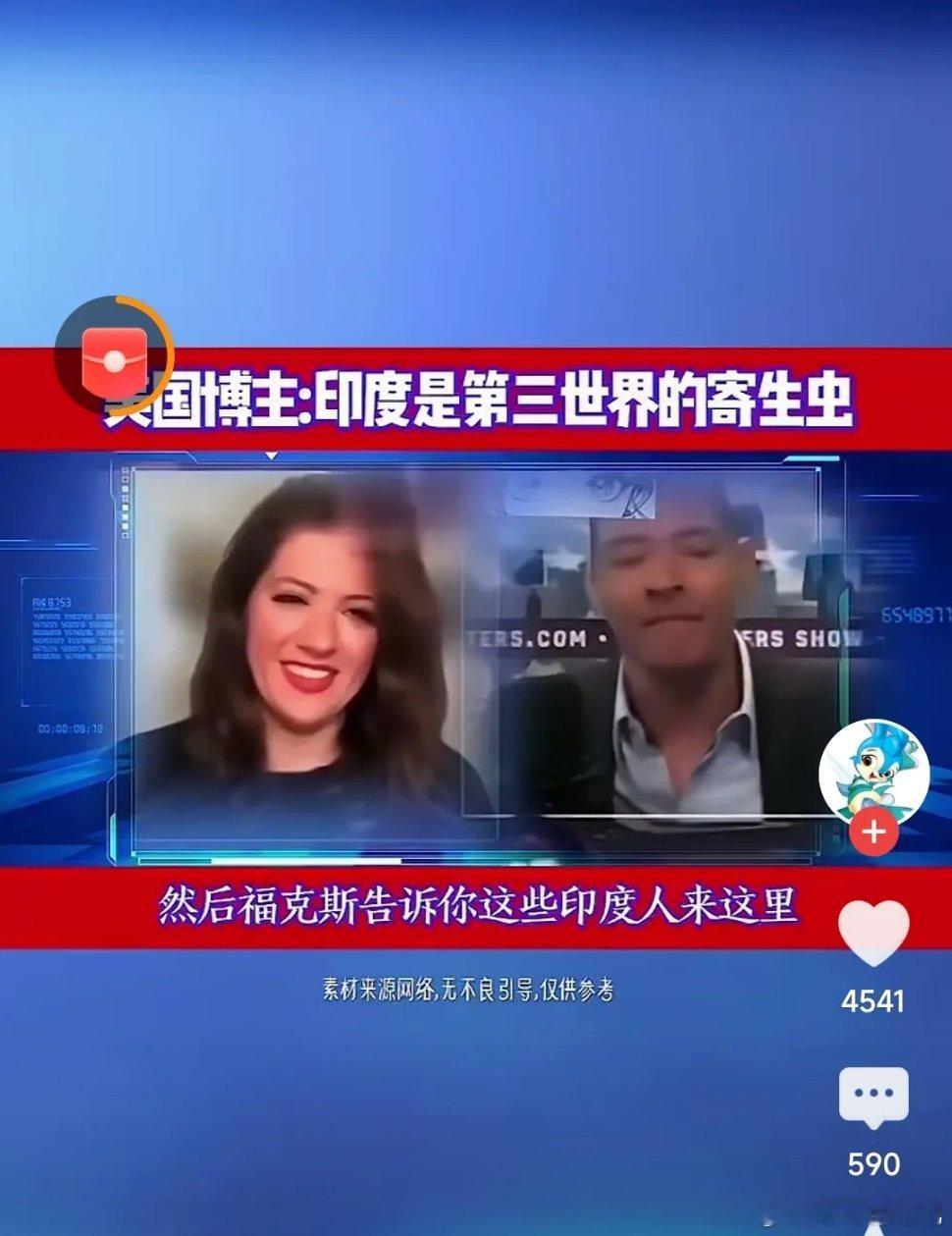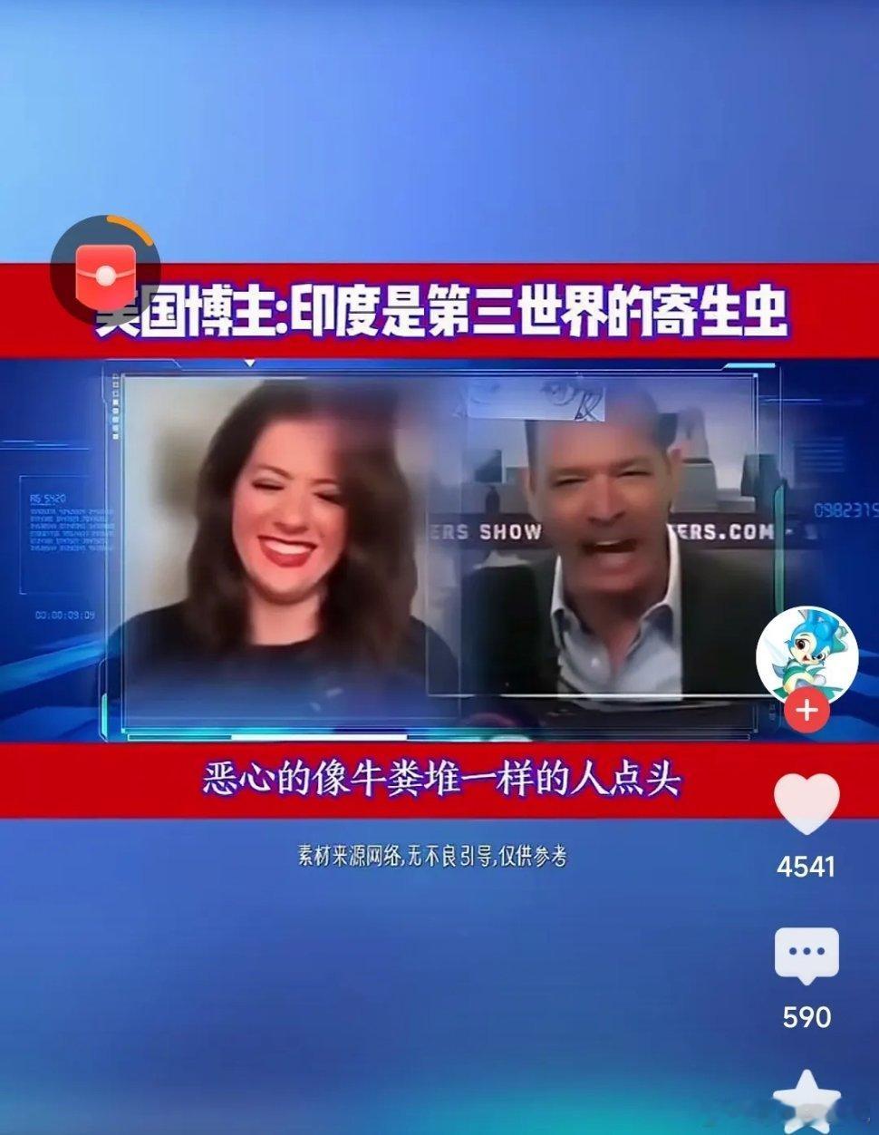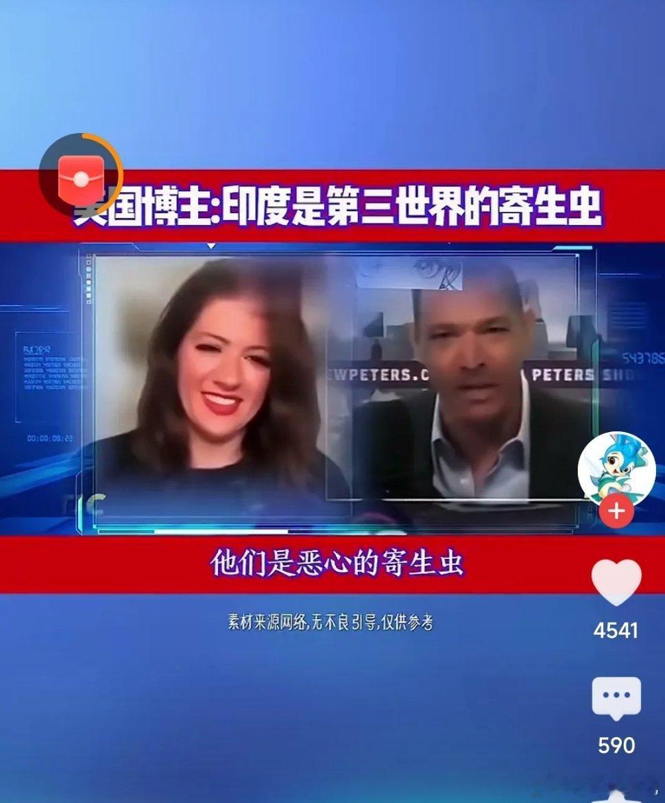 美国博主:印度是第三世界的寄生虫,你就和一个肥肥的臭臭的,恶心的像牛粪堆的人点头,印度人永远不会融入你的文化,他们是恶心的寄生虫。网友说:佩服老美这一点,人家喜不喜欢都直接说,毫不掩饰,而且有时候看的也蛮准的。有的人说:zg移民局,zg驻印大使馆,应该来看看这些。这个美国人评论硬度很到位,他们看透了阿三。有的人说:地球上只有寄生虫才生活无忧,靠吸食寄生的营养而生存。现今印度低,素质人口大爆发,极大的挤占他国的生存空间和就业环境。有的人说:还是美国人见识深刻,跟三哥过招,赢了赚一坨,平了粘双手,输了喷一身。大家说是这样的吗?