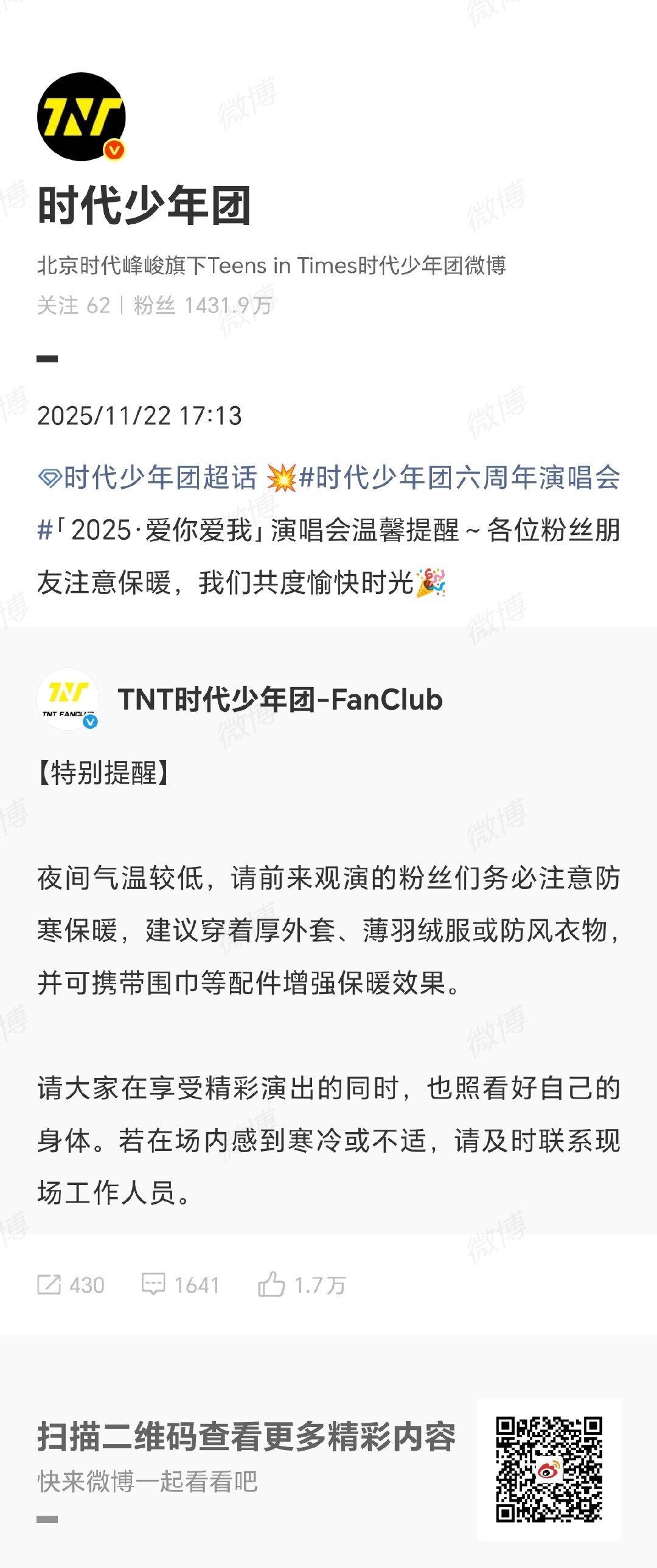 时代少年团六周年演唱会温馨提醒注意保暖噢