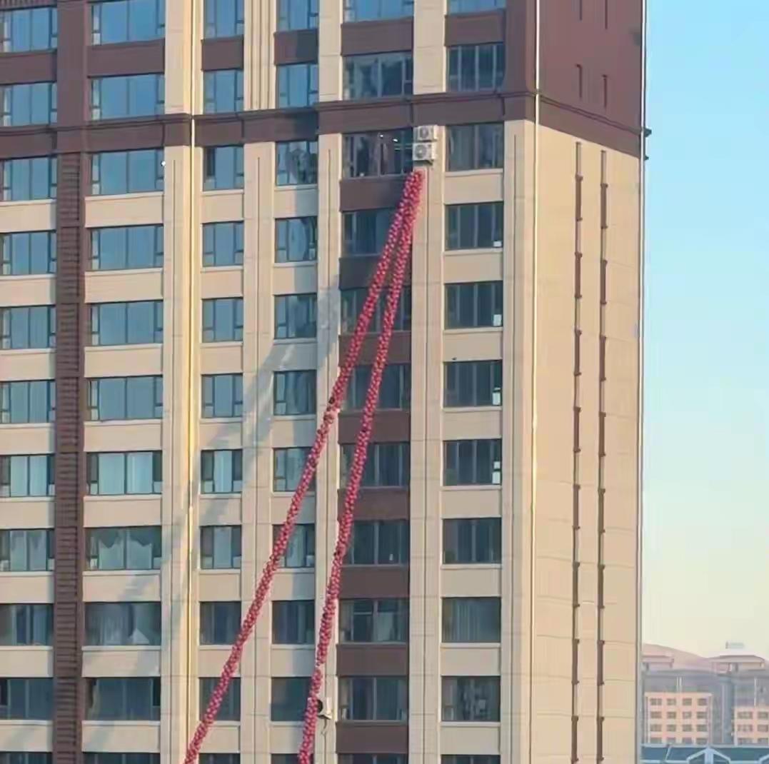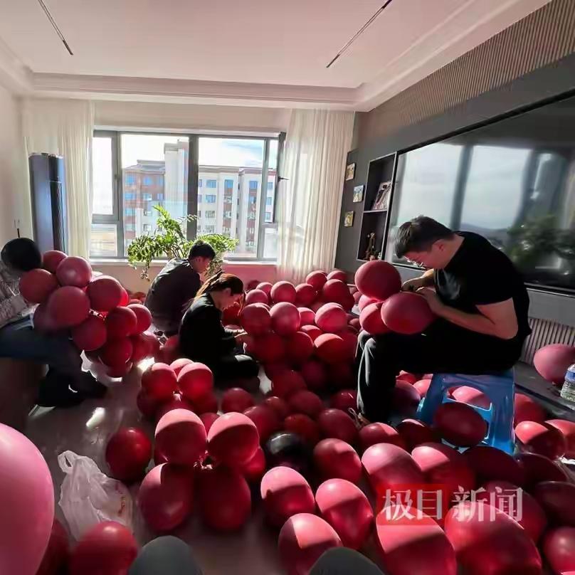 11月21日,内蒙古赤峰市一对新人结婚,直接把婚礼“卷”出了新高度!两条50米长的气球飘带从15楼婚房垂到地面,瞬间成为小区焦点,这究竟是怎样一场婚礼? 21日早上8点,嘉和新城小区的宋先生起床后,发现对面15楼住户窗外挂着两条红色飘带。拉近镜头,竟全是气球绑成,密密麻麻。他拍下视频,小区居民纷纷热议,直呼“结婚太卷了”。 新郎好友张先生透露,他18日就从成都赶来帮忙吹气球。本以为五六百个足够,没想到新郎买了4000个,30个朋友吹了整整3天。虽然累得够呛,但大家都觉得这布置超有情绪价值。 新郎刘先生说,是在网上看到类似布置才提的建议。气球当天上午7点放下,中午接完新娘、亲友赴宴后就收起来了。 这场婚礼布置是不是超有创意?如果是你,会选择这样特别的婚礼布置吗?快来评论区聊聊!