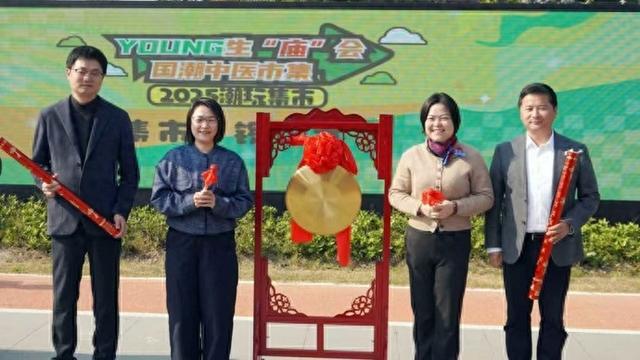 11月22日,由宝山区卫生健康工作党委、宝山区卫健委联合庙行镇党委、政府共同打造的“YOUNG生‘庙’会”国潮中医市集,在共康党群服务中心东茭泾畔鸣锣开市。