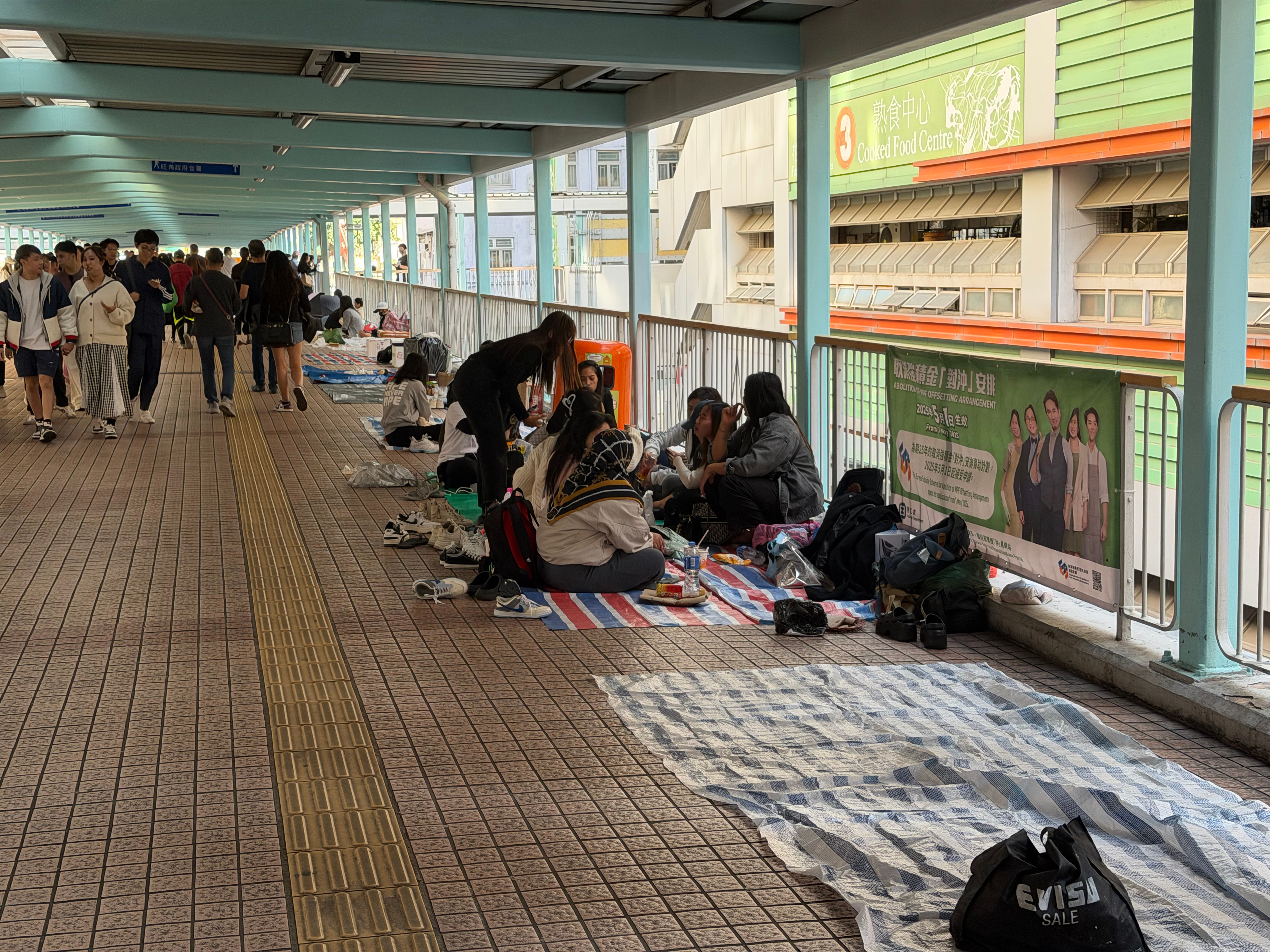 在香港看到了周末菲佣聚会,就在天桥上随便打个地铺就行了,一群群唱歌、吃东西的啥都有,好快乐~